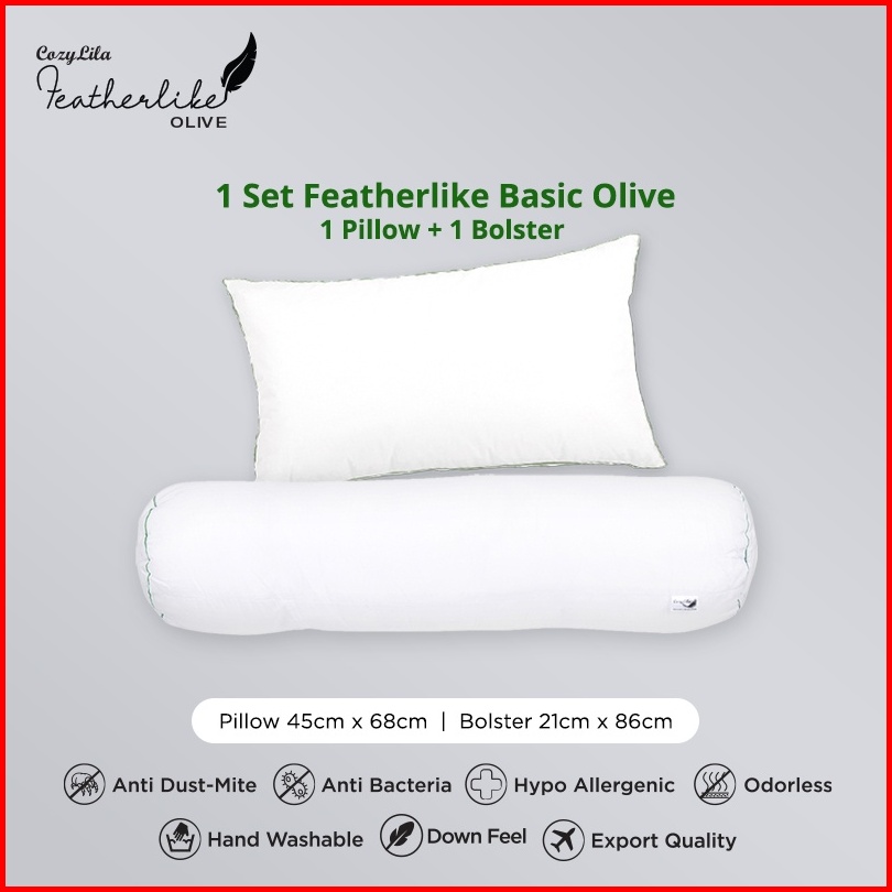 Paket 1 Bantal 1 Guling Bulu Angsa Featherlike Bsc Olive Single List