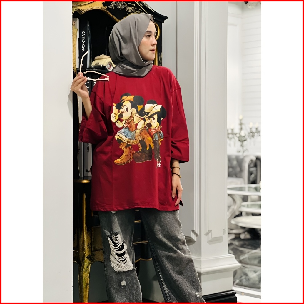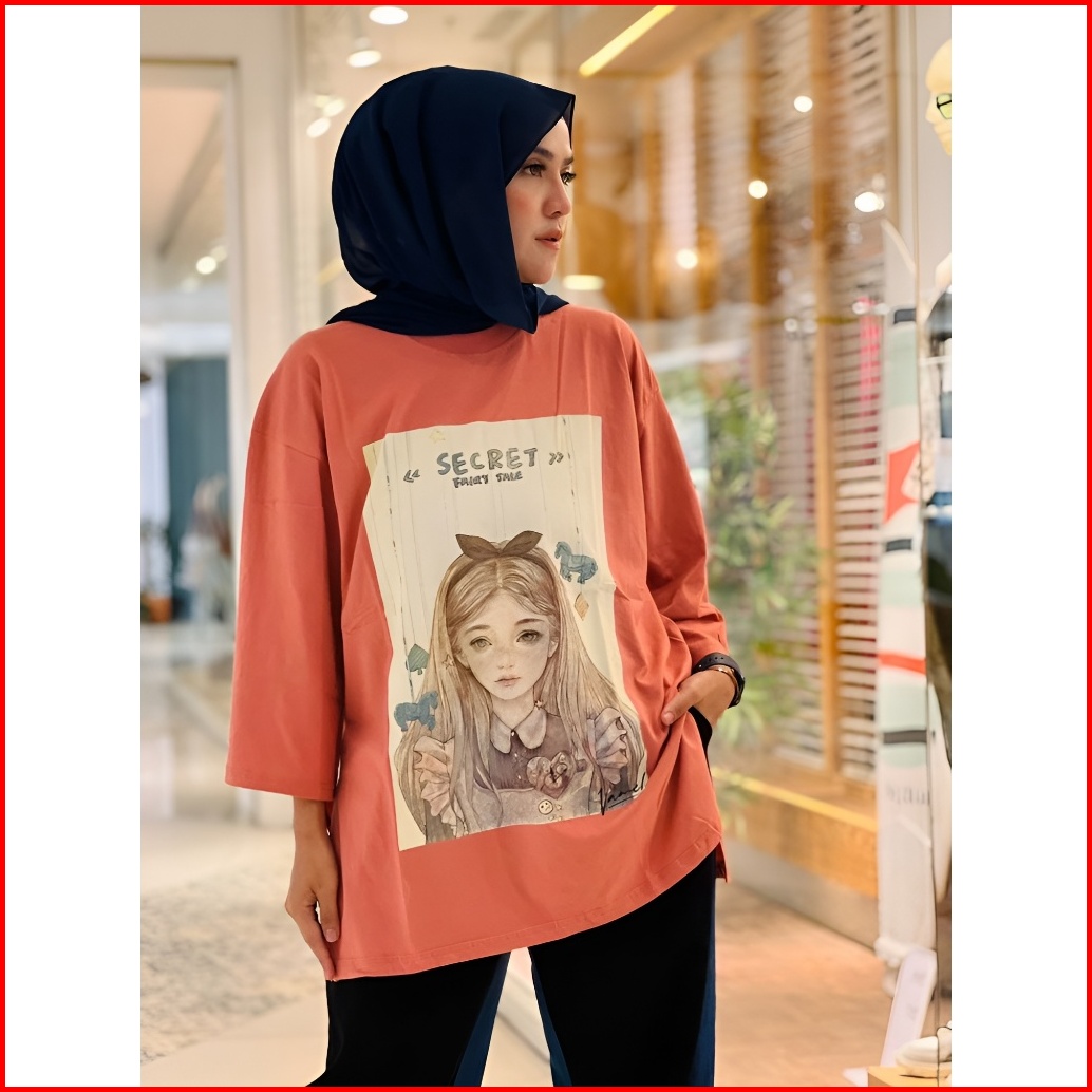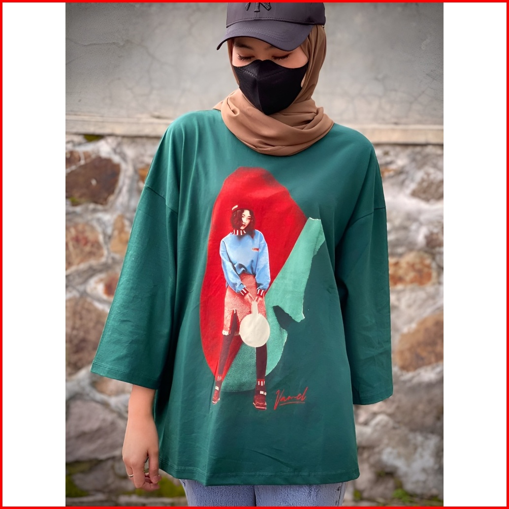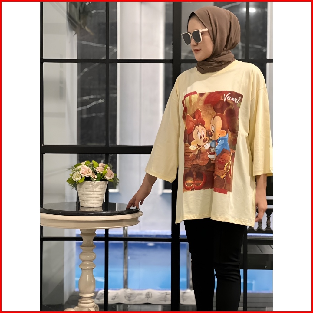 Vamel -baju Kaos Atasan Wanita Oversize Kaos Distro Wanita Oversize Lengan 7 8 Baju Wanita Oversize Kekinian Bahan Cotto