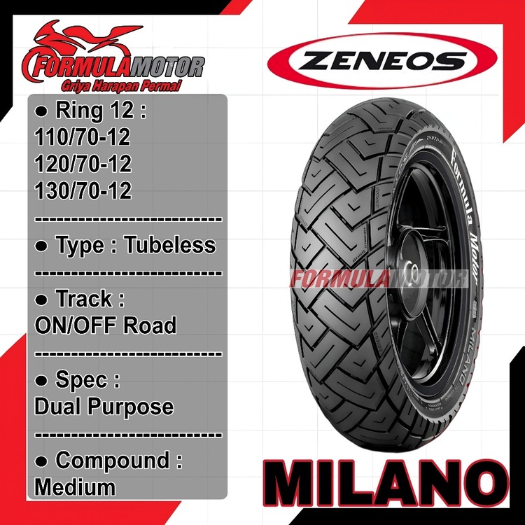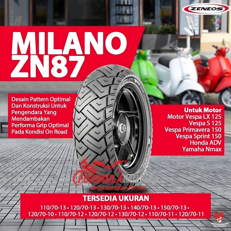 Ban Luar Motor Vespa Piagio Zip Minimoto Ring 12 Zeneos Milano ZN87 Uk 130/70-12 Tubeless Dual Purpose Produksi Terbaru