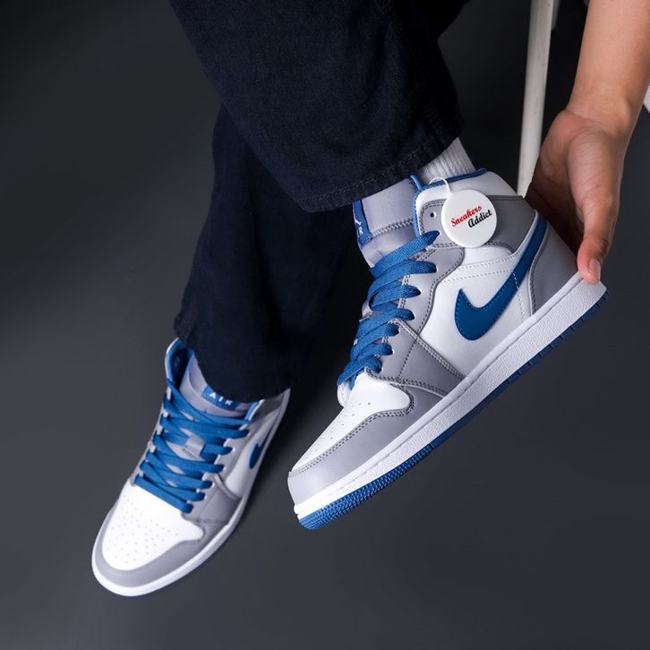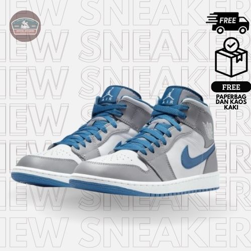 [Star] Sepatu Sneakers Nike Sepatu Sneakers Air Jordan 1 Mid Cement True Blue