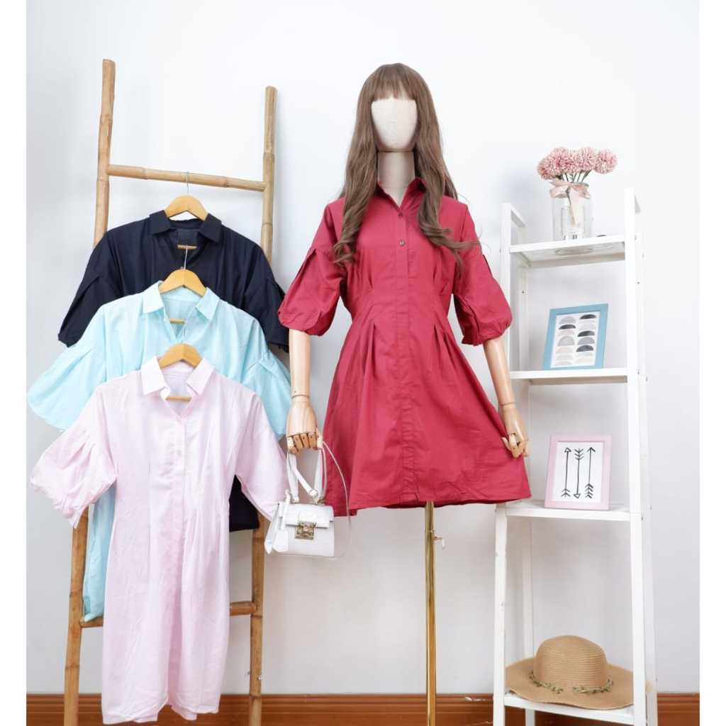 [COTTONBELLS] DRESS PREMIUM ADLEY BUTTON PLAID TIED MIDI (AR - D 4895)