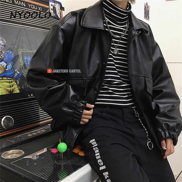 JNK x CPL - Jaket Oversize Pria Wanita Big Size Bahan PU Faux Synthetic Leather Jacket Oversized Jeket Semi Kulit