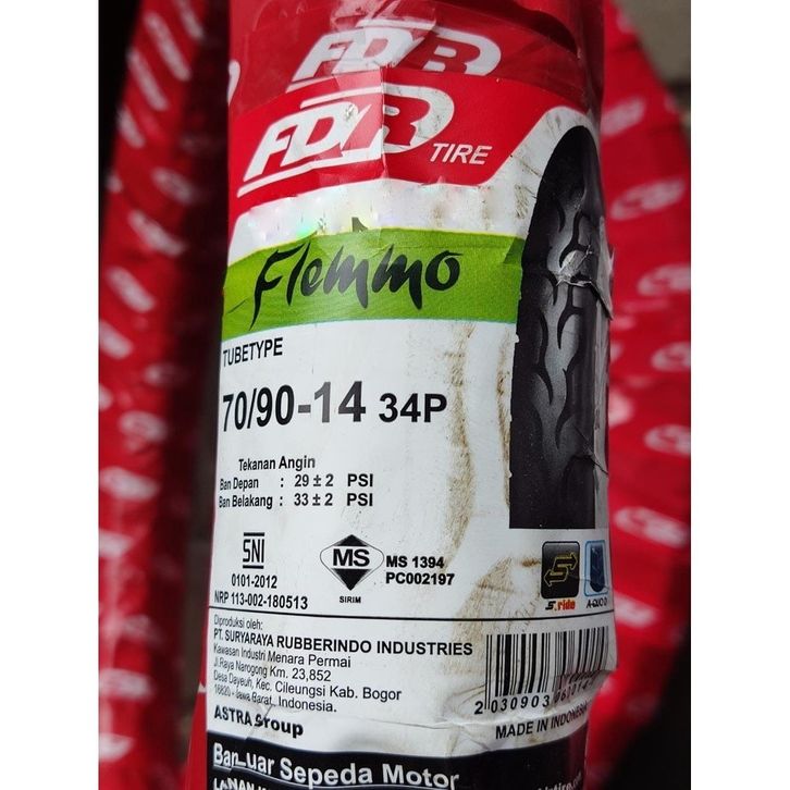 BAN MOTOR FDR FLEMMO NON TUBELESS RING 14 70/90 80/90 90/90 MATIC BEAT MIO TUBETYPE ORI ( FLEMO NO TUBLES ) 70 80 90