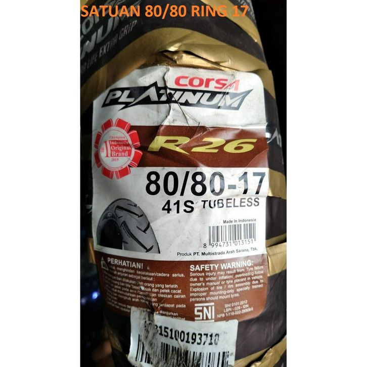 BAN TUBLES CORSA PALTINUM R26 70/80 80/80 90/80 100/80 RING 17 MOTOR BEBEK SUPRA JUPITER NINJA CBR TUBELESS KORSA 90 80
