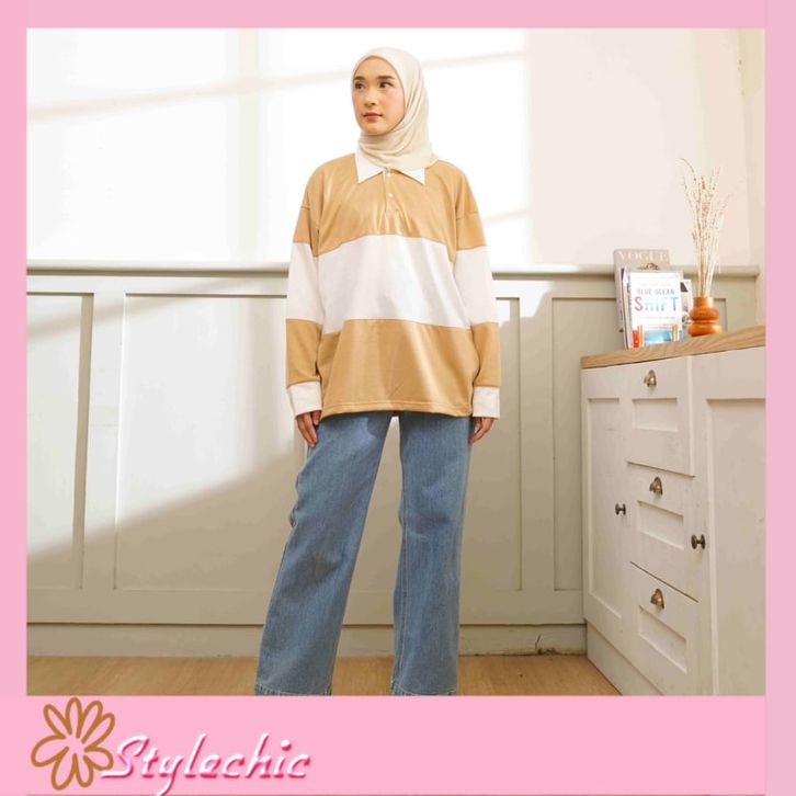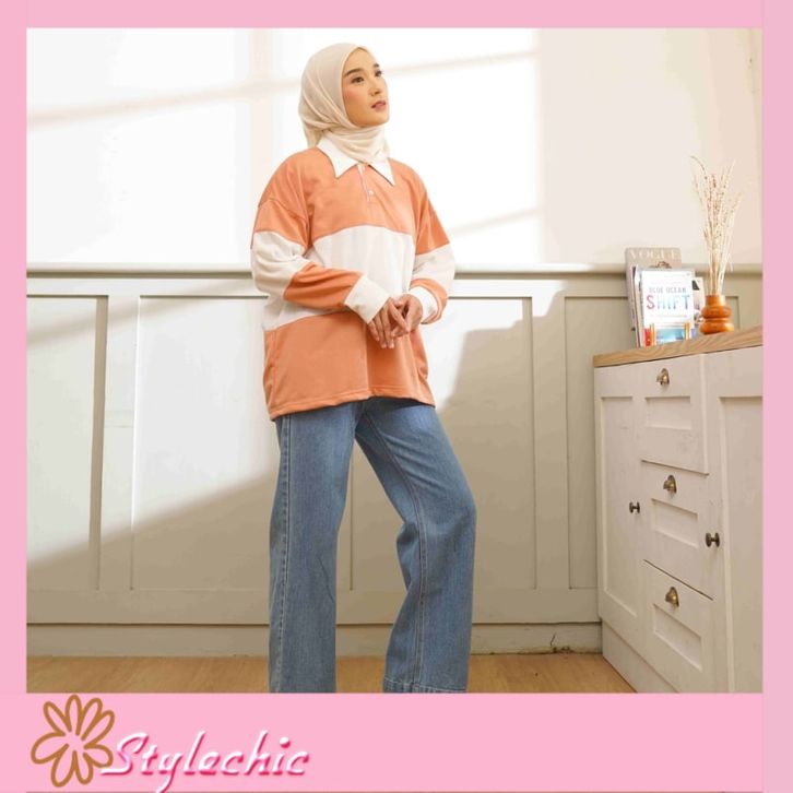 Lengan Panjang Polo Shirt Kaos Kerah Kombinasi Wanita RUGBY SHIRT