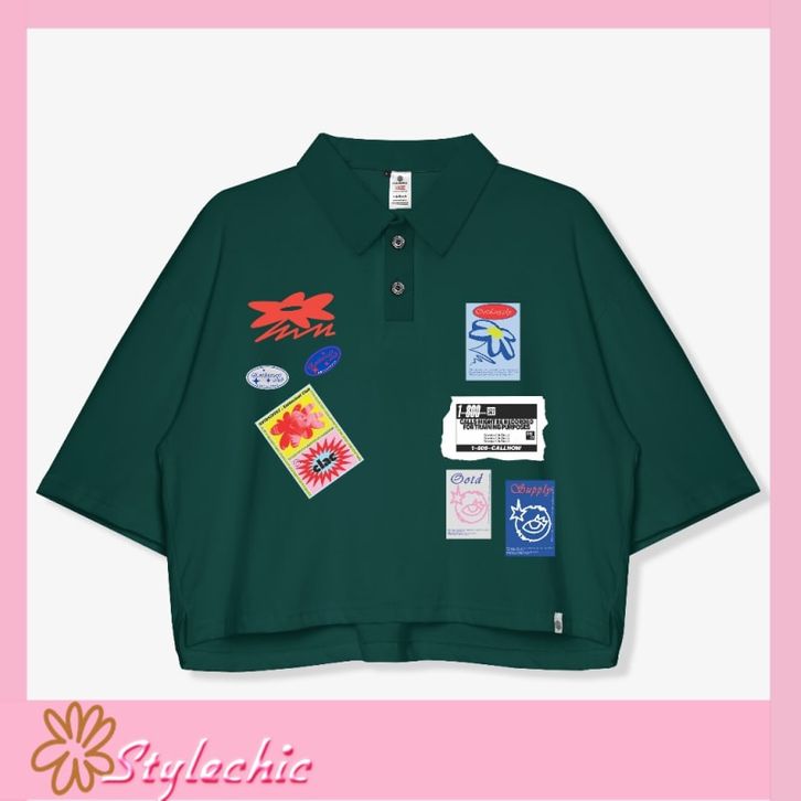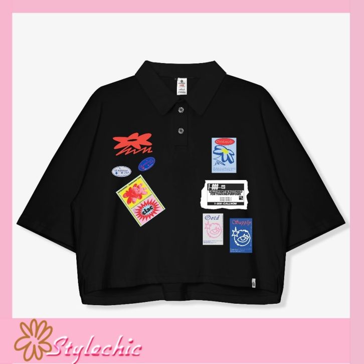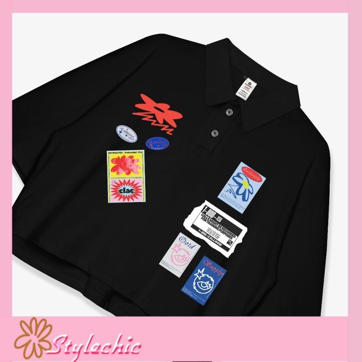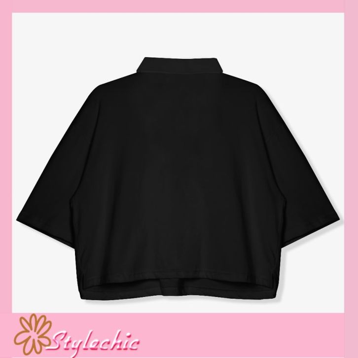 Oversize Polo Crop Shirt Discord Black Dark Armyl Polo Crop Pria dan Wanita OVZ CPS008