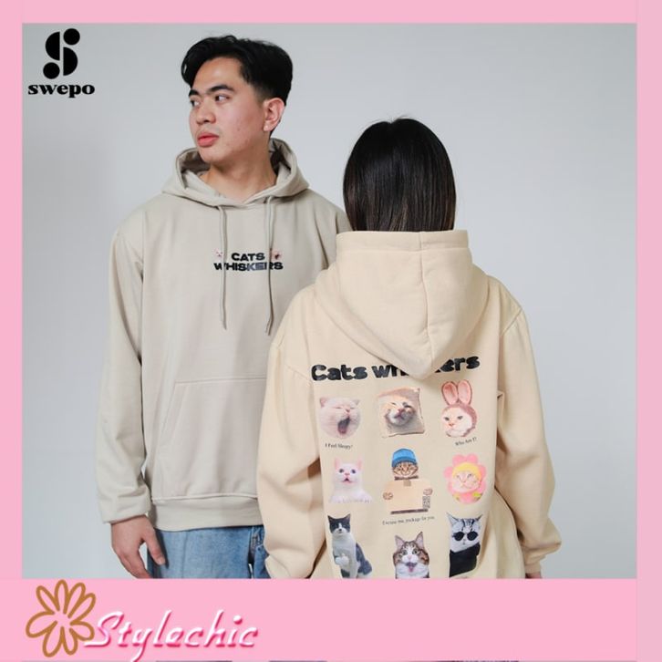 Hoodie Jumper Cat Whiskers Sablon Size M XXL Pria Wanita SWEPO
