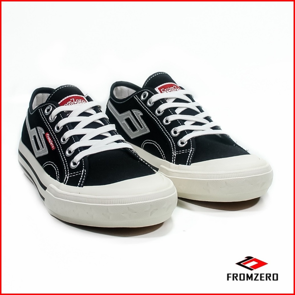 Fromzero - Sepatu Sneakers Kasual Sepatu Sekolah Pria Wanita Aransa Black White Flash 36 - 45