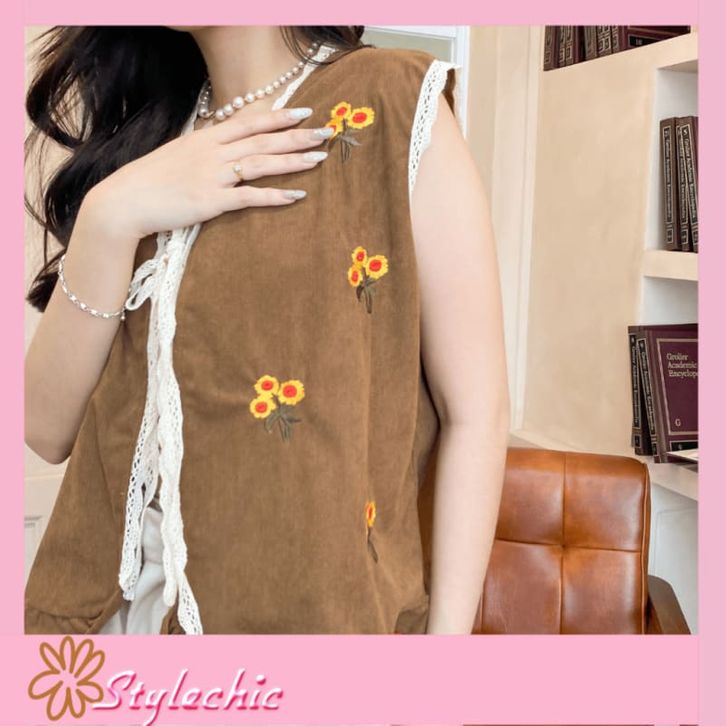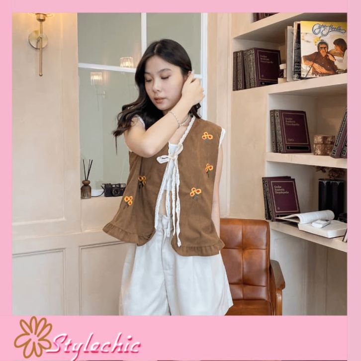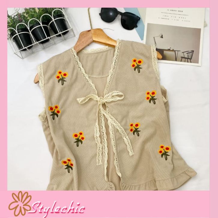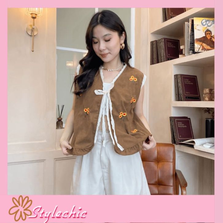Viana Floral Lace Vest Tali Rompi Wanita Atasan Tanpa Lengan / Rompi Bordir Lace Embriodery Sleeveless Woman Top