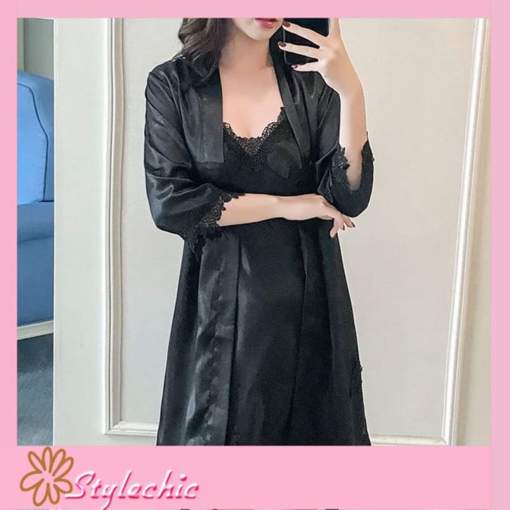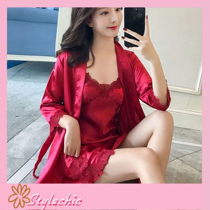 Pakaian Tidur Modern Satin Bermutu Tinggi Baru / Kimono / Pakaian Tidur Wanita