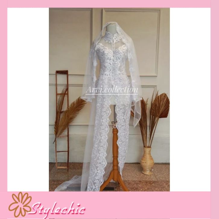 Kebaya akad ekor free selendang / gaun pengantin akad