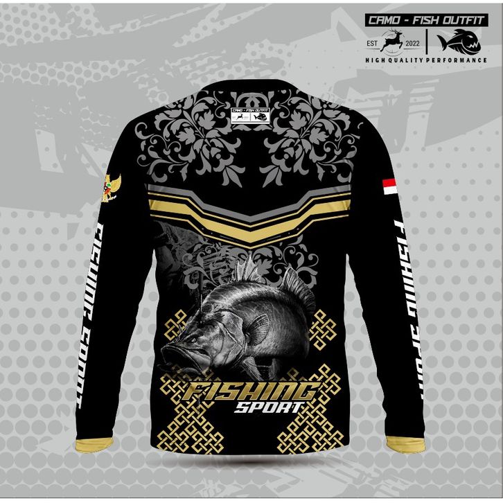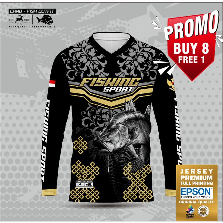 baju pancingan Baju Jersey custom mancing DRIFIT PREMIUM motif FLOWER PATTERN BARAMUNDI BLACK