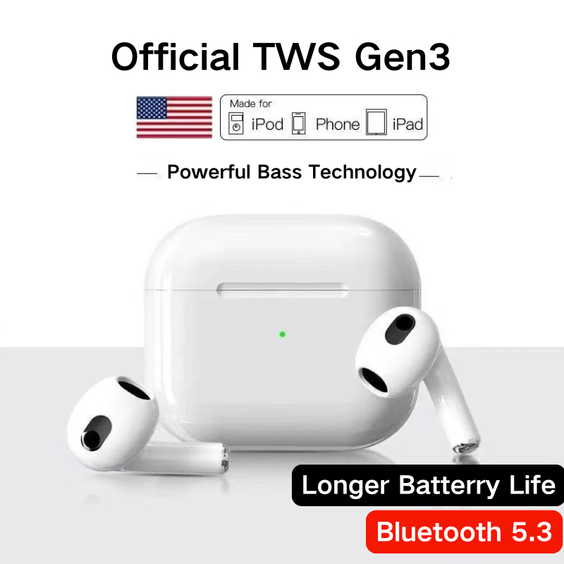 TWS Pods Gen 3 headset bluetooth earphone bluetooth with Wireless Charging case + Free Original