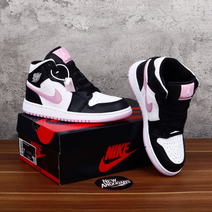 Sepatu Wanita Nike Aj 1 Mid Black Light Arctic Pink