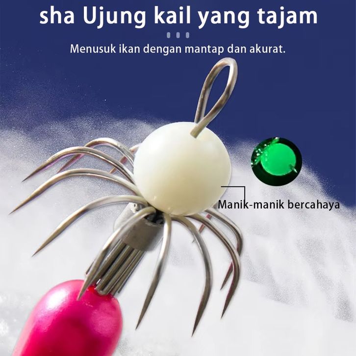 kail pancingan FLASH SALE1PCS Kail gurita pancing laut bercahaya delapan kait fluoresensi Cumi-cumi gurita