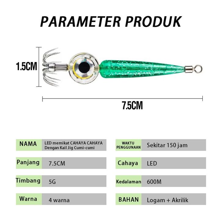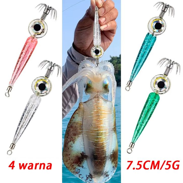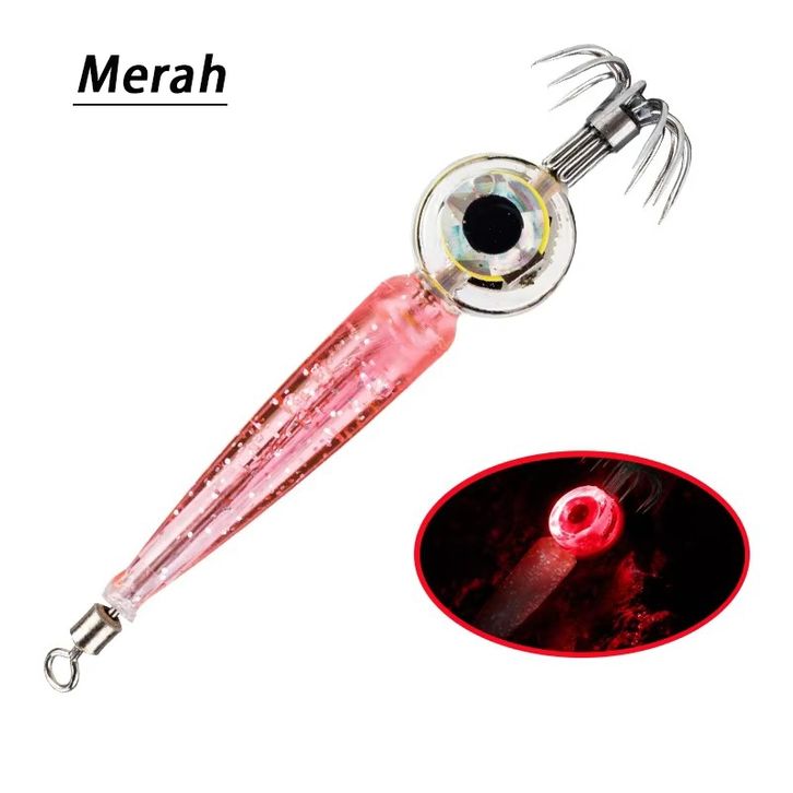 kail pancingan Flash sale7.5CM Umpan mata Cumi lampu LED RGB memancing cumi-cumi eging Merah / Hijau