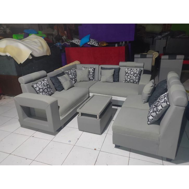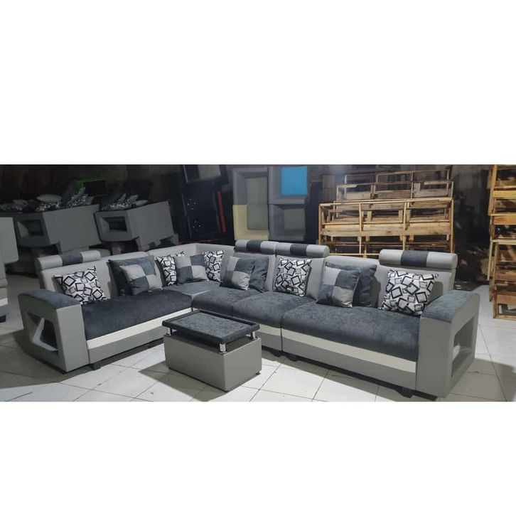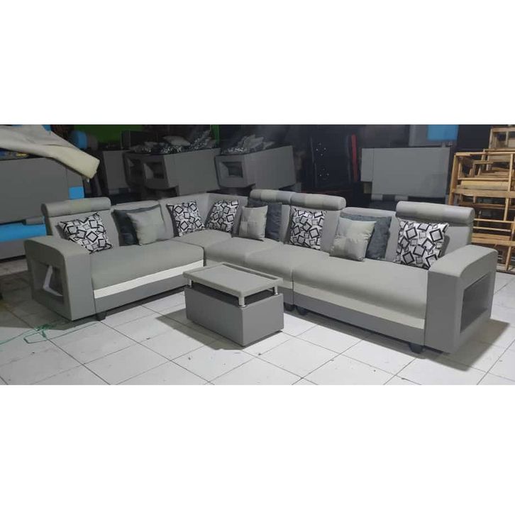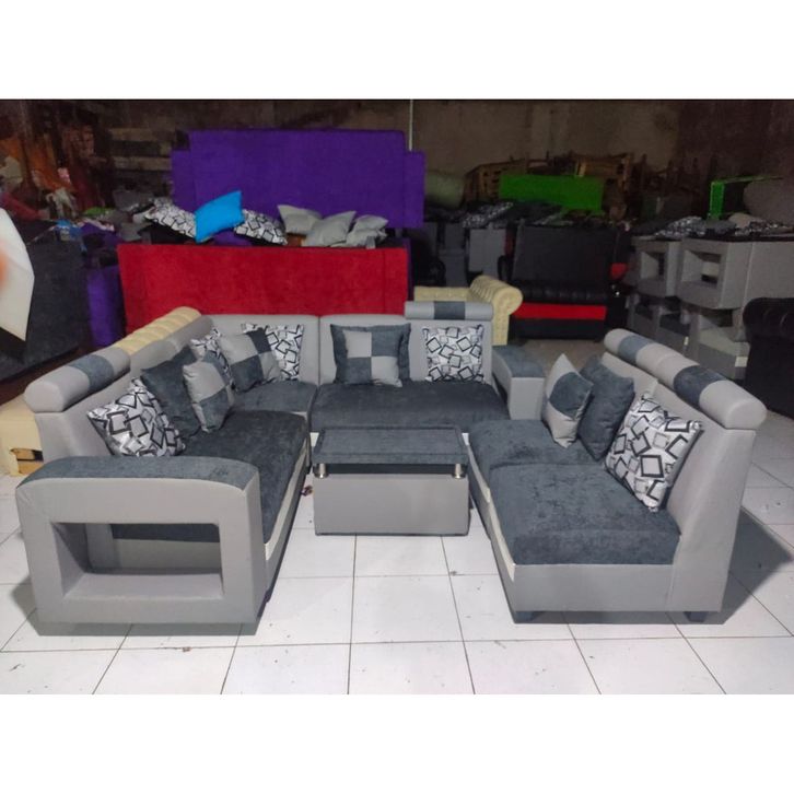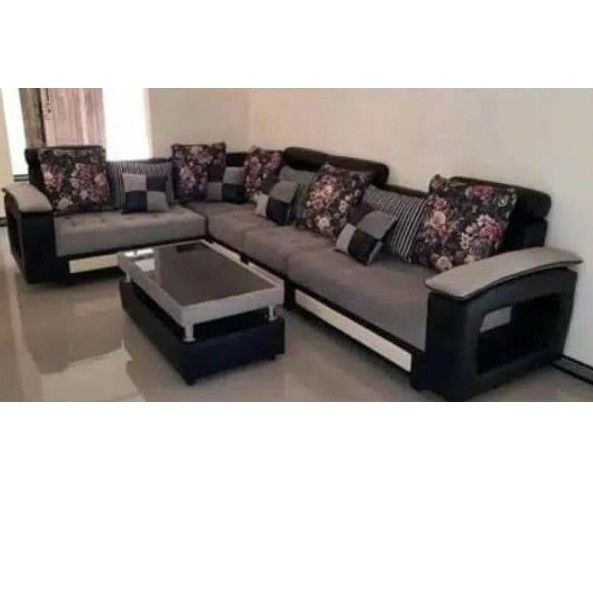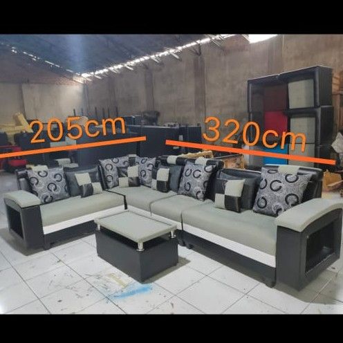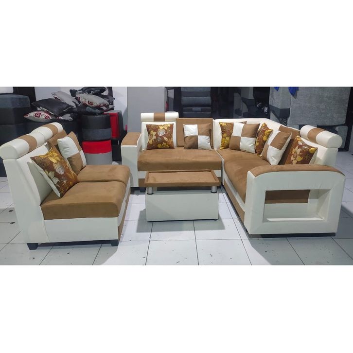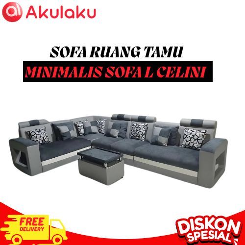 SOFA RUANG TAMU MINIMALIS SOFA L CELINI / SOFA SUDUT KAIN KOMBINASI KULIT SINTETIS DAN BELUDRU HARGA PROMO