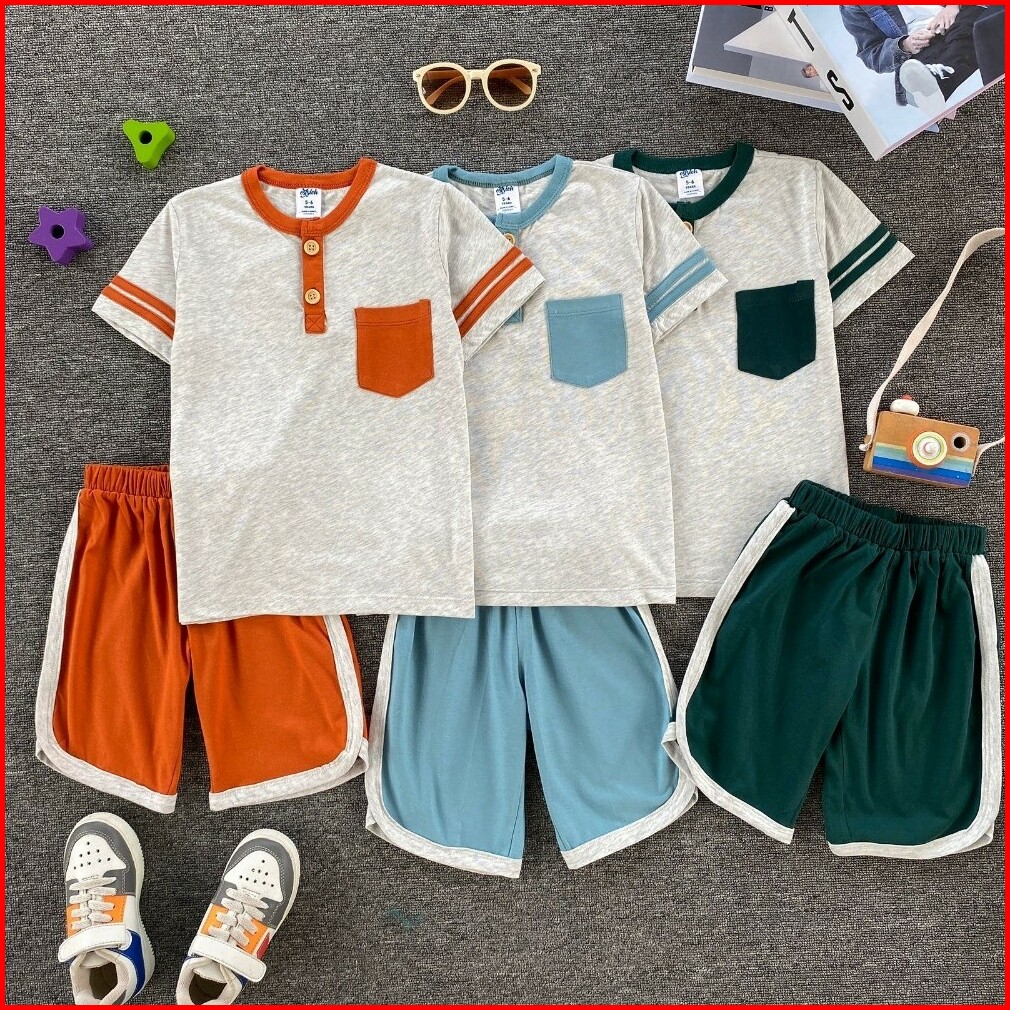 Setelan Anak Pdk Retro Gavin Laki-laki Setelan Anak Retro Pocket Pendek 2-8 Tahun Setelan Anak Unisex Setelana Anak Seha