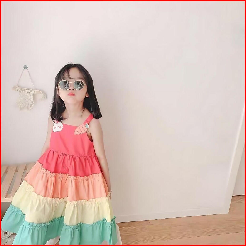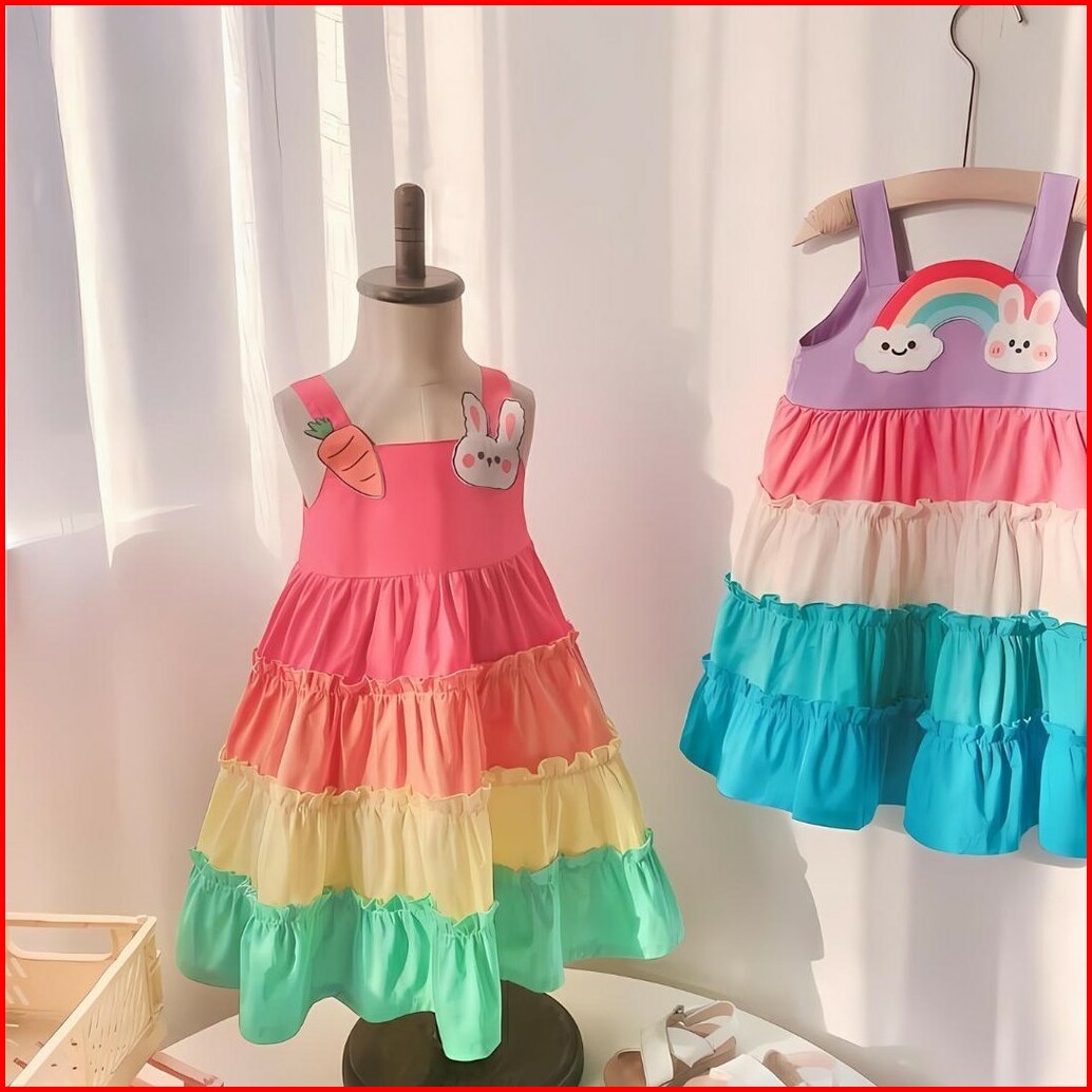 Najwa - Dress Anak Yuriko Rainbow Bunny Carrot Bordir Lucu Fashion Dress Anak Perempuan Korean Style Terbaru