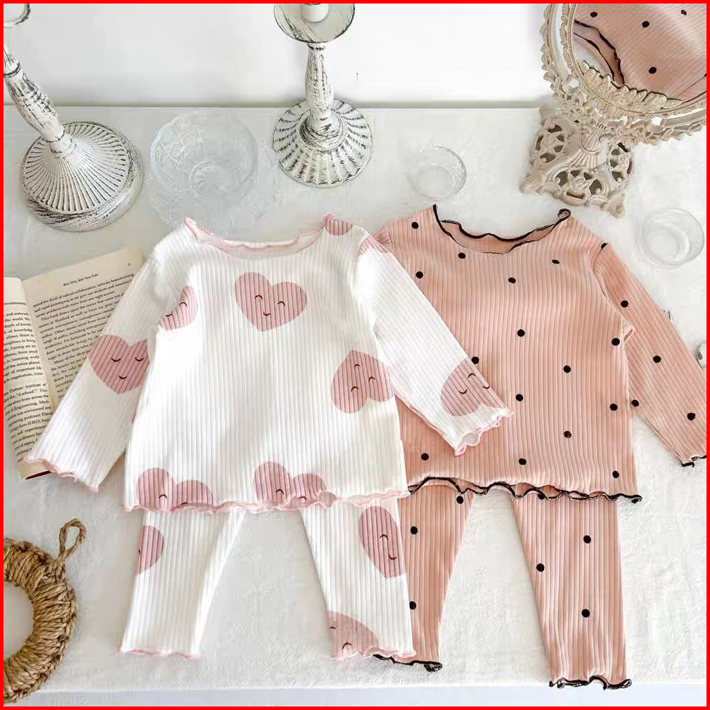 Najwa - Setelan Baju Tidur Anak Perempuan Motif Love Rib One Set Piyama Lucu
