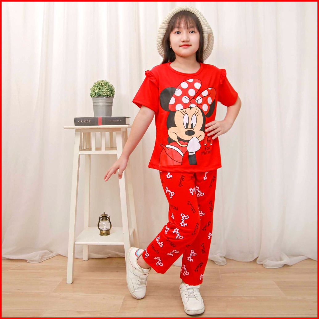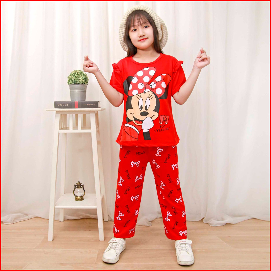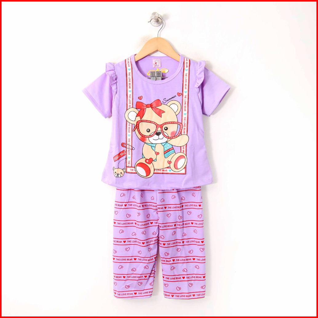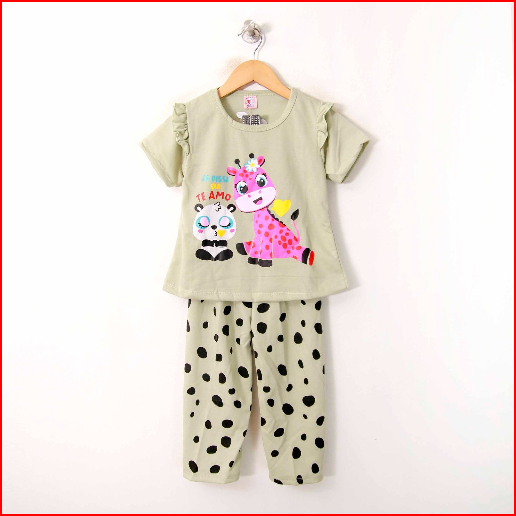 Stelan Anak Perempuan 2-9 Tahun Lengan Pendek Celana Panjang Motif Stelan Baju Anak Perempuan Ruffle
