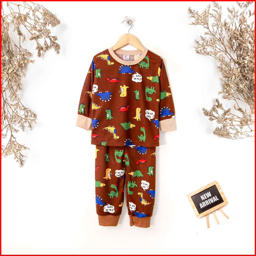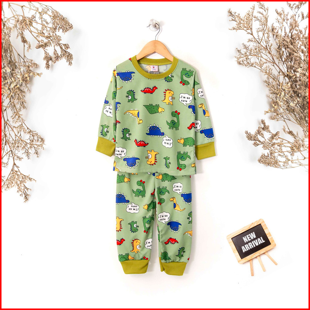 Stelan Anak Laki Laki 1-9 Tahun Bahan Baby Terry Full Printing Dinosaurus Baju Tidur Anak Piyama