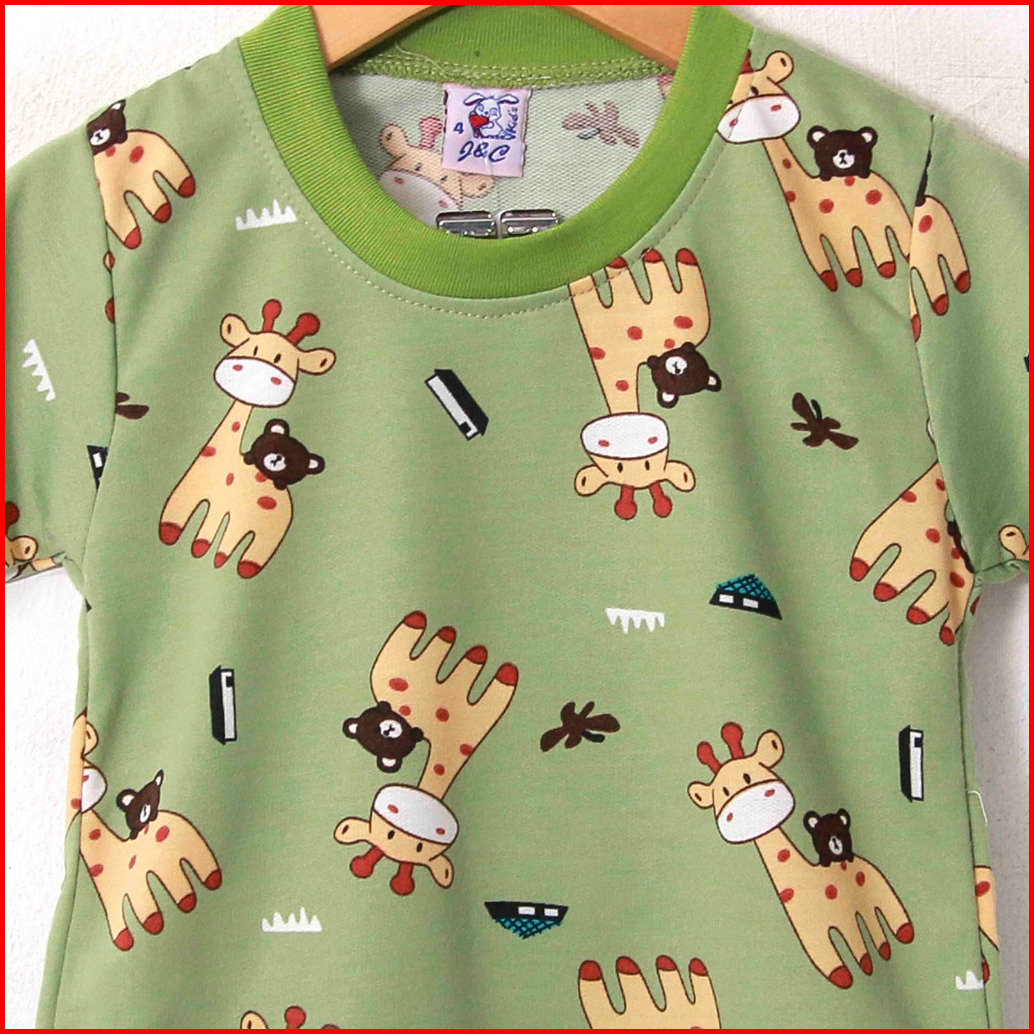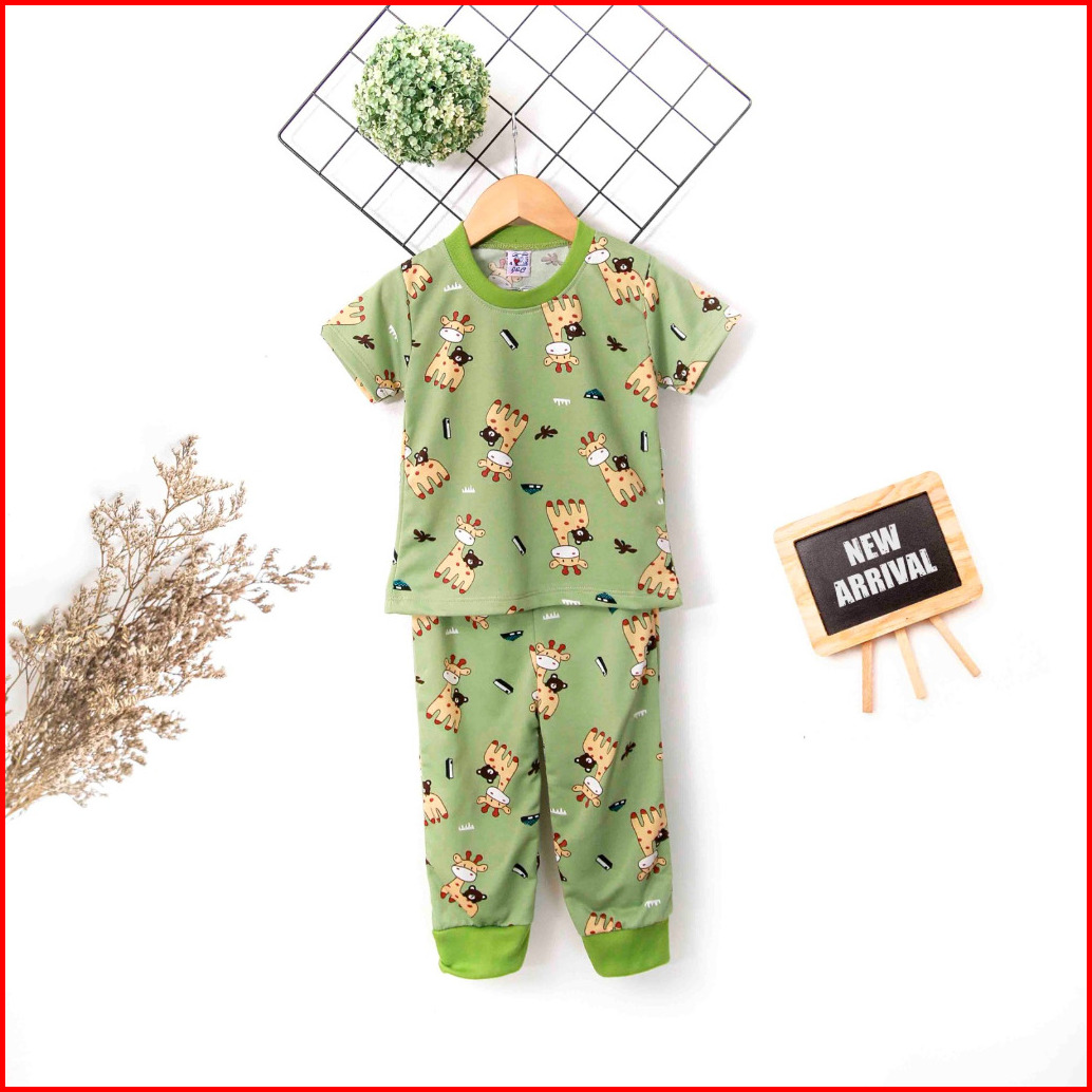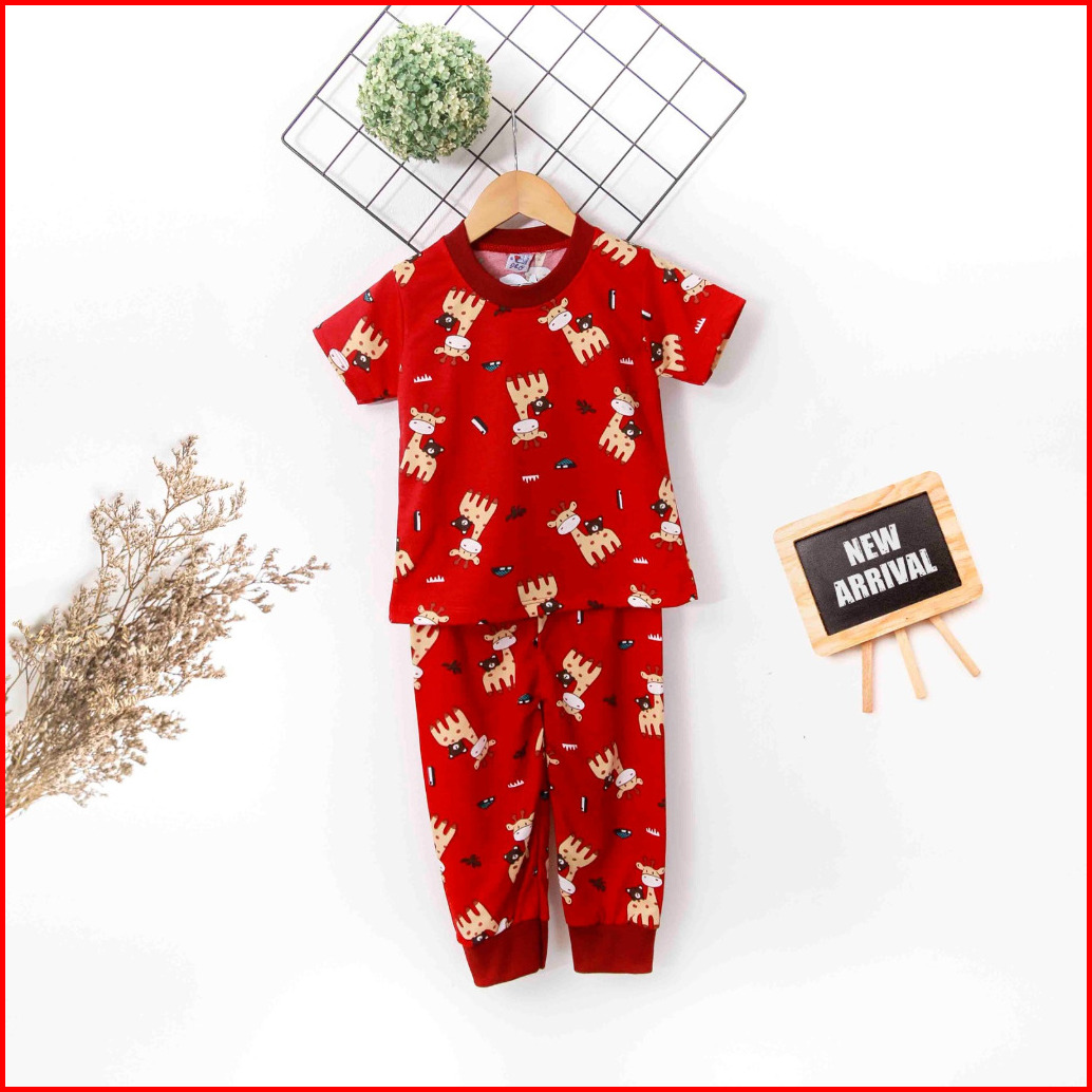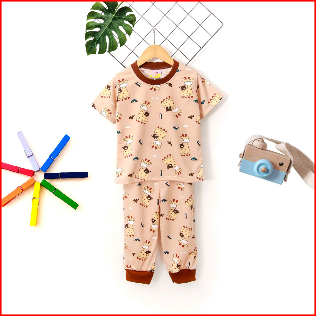 Stelan Anak Laki Laki Dan Perempuan Lengan Pendek Celana Panjang 2-9 Tahun Full Printing Jerapah