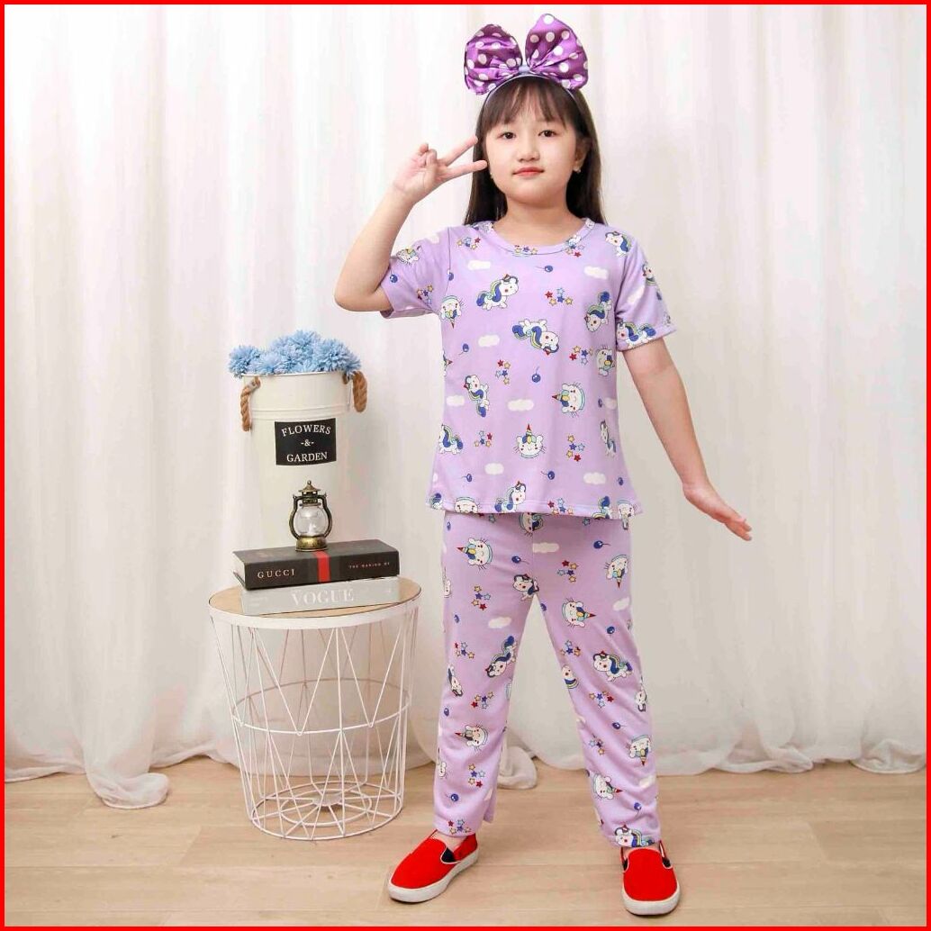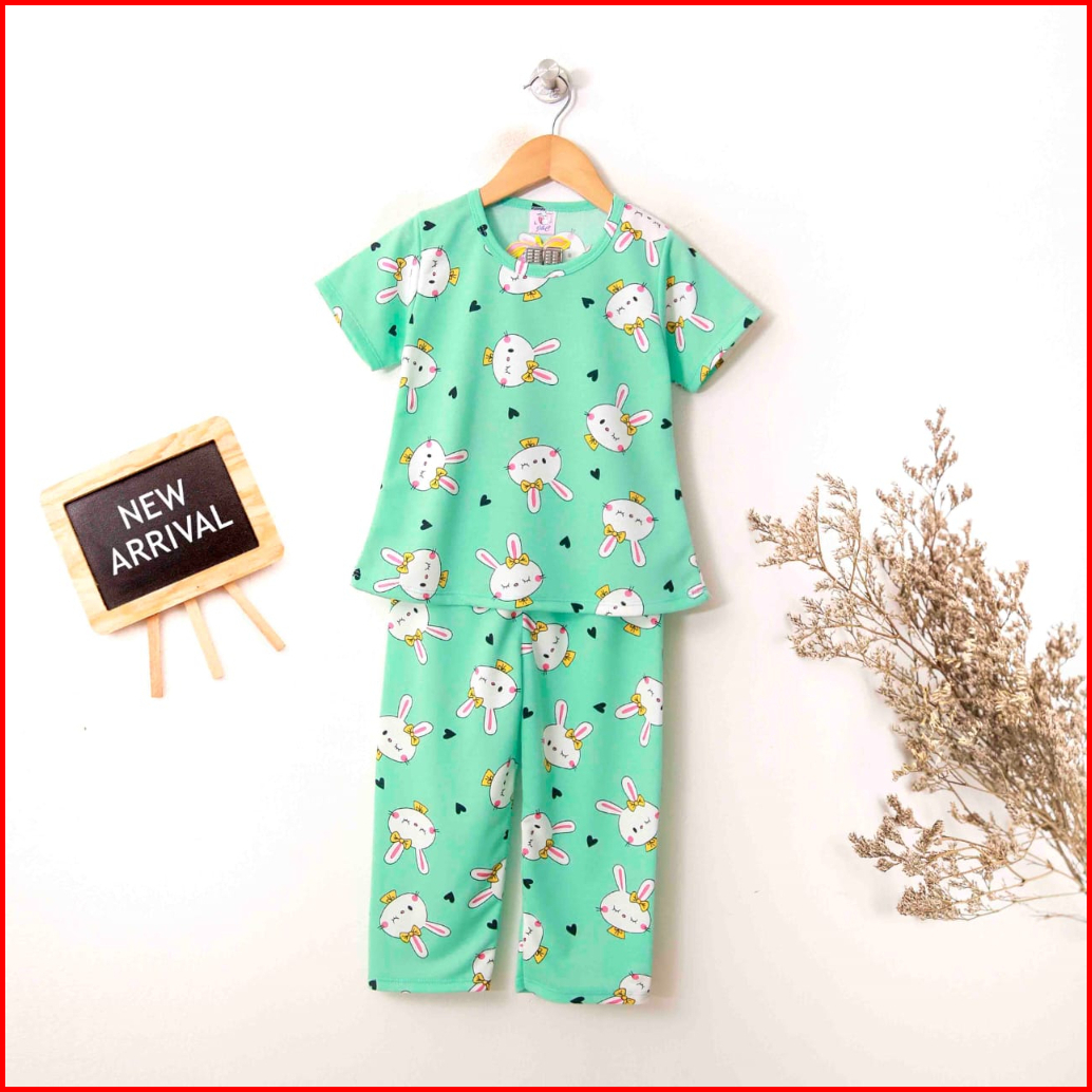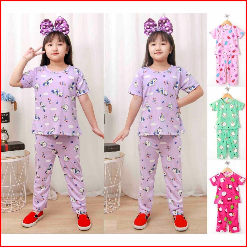 Stelan Anak Perempuan Lengan Pendek Celana Panjang 2-9 Tahun Full Printing Baju Tidur Anak Set Anak