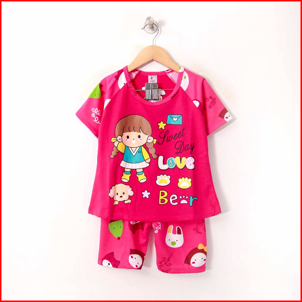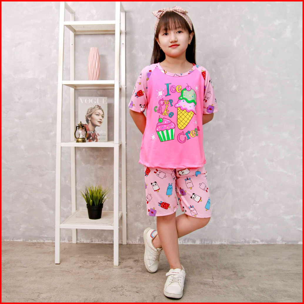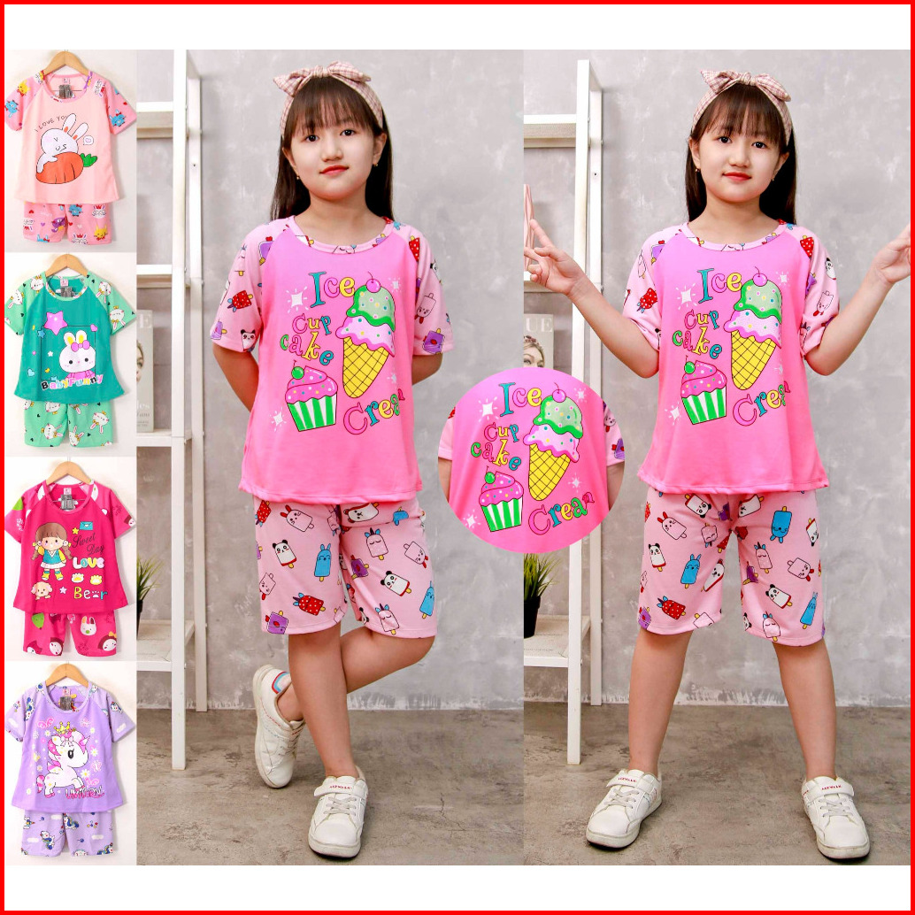 Setelan Anak Perempuan Lengan Pendek Celana Pendek 2-9 Tahun Baju Anak Perempuan One Set Anak Cewek