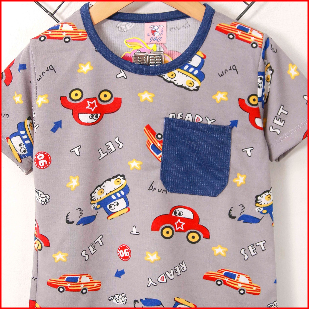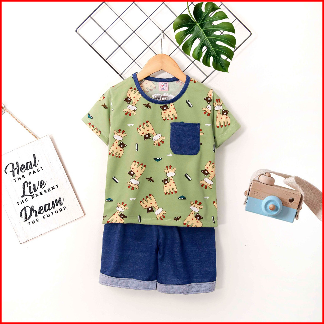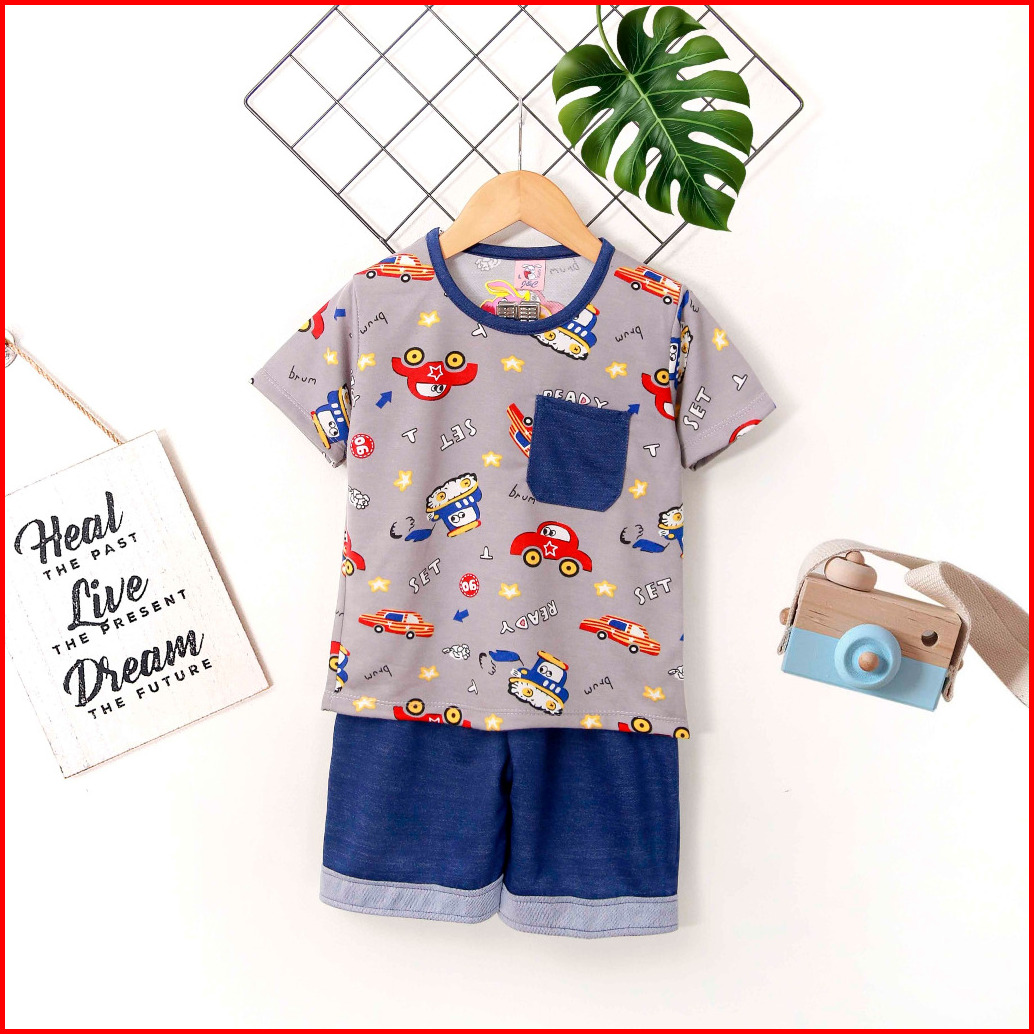 Stelan Anak Laki-laki 2-9 Tahun Lengan Pendek Celana Pendek Stelan Baju Anak Cowok Pocket