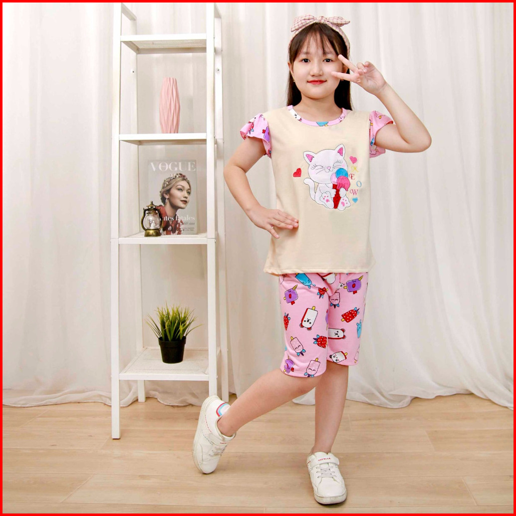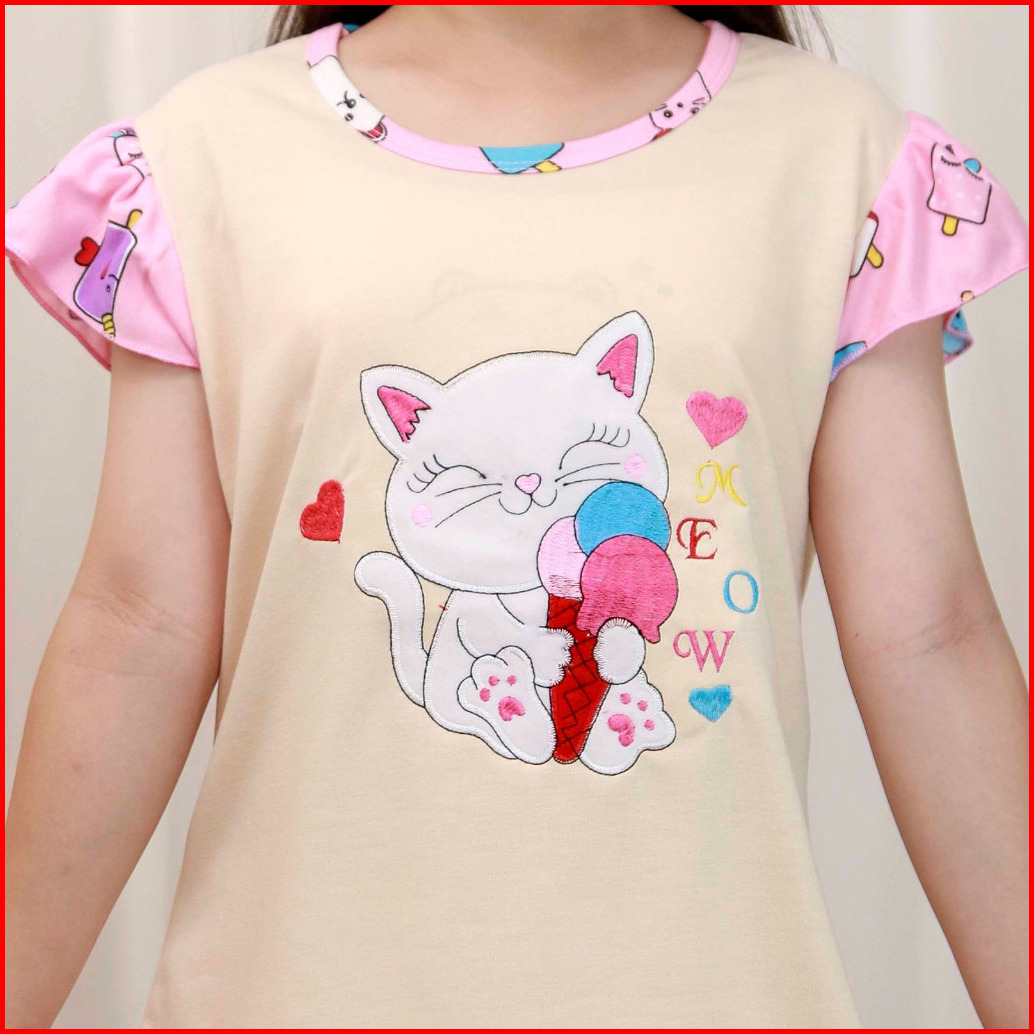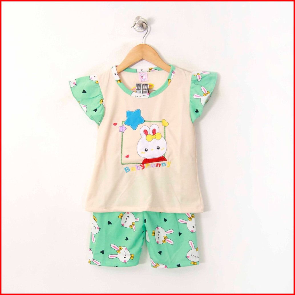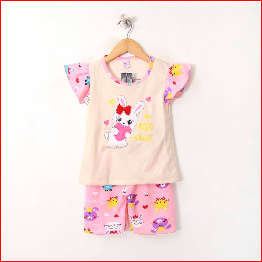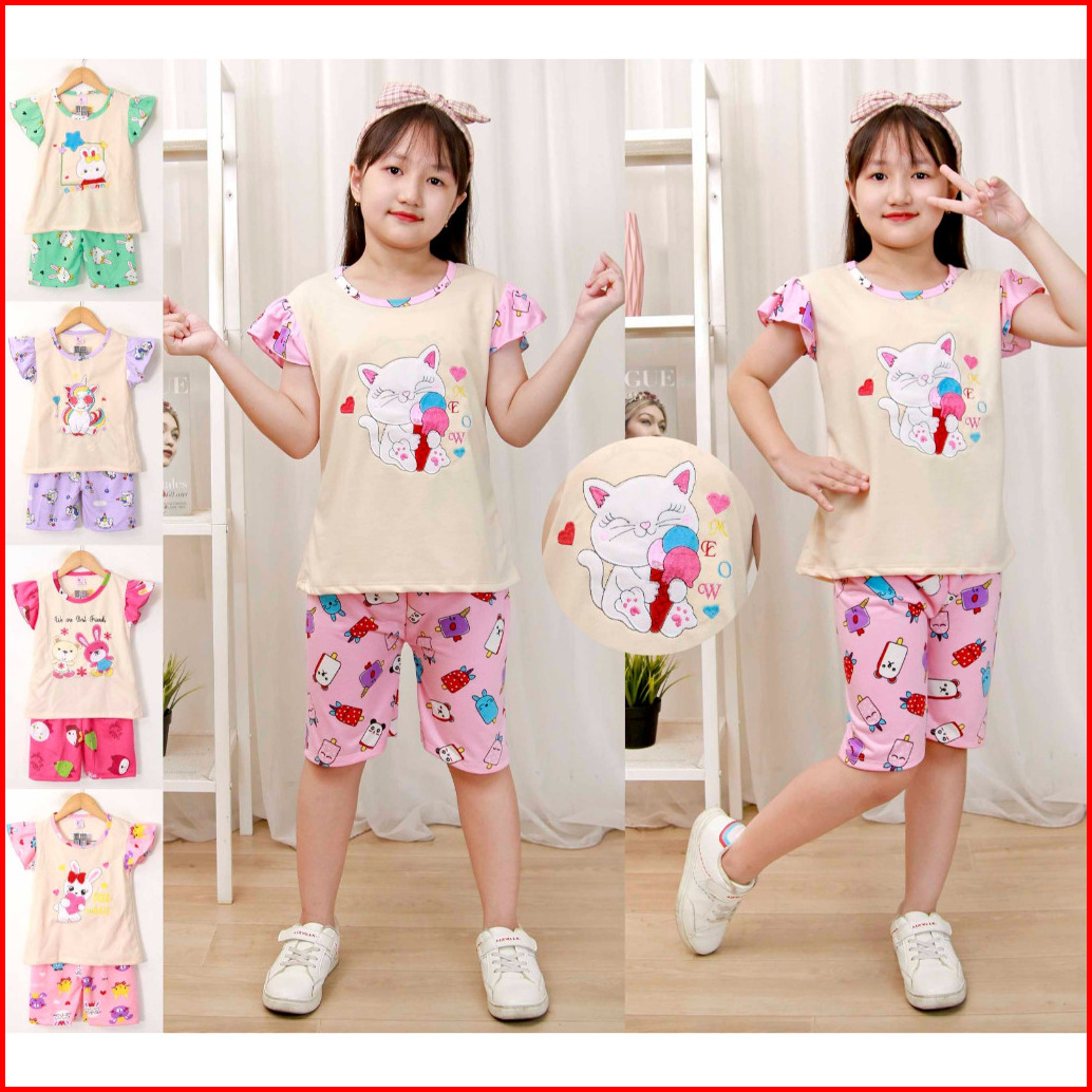 Stelan Anak Perempuan 2-9 Tahun Lengan Pendek Celana Pendek Gambar Di Bordir Tangan Model Ruffle