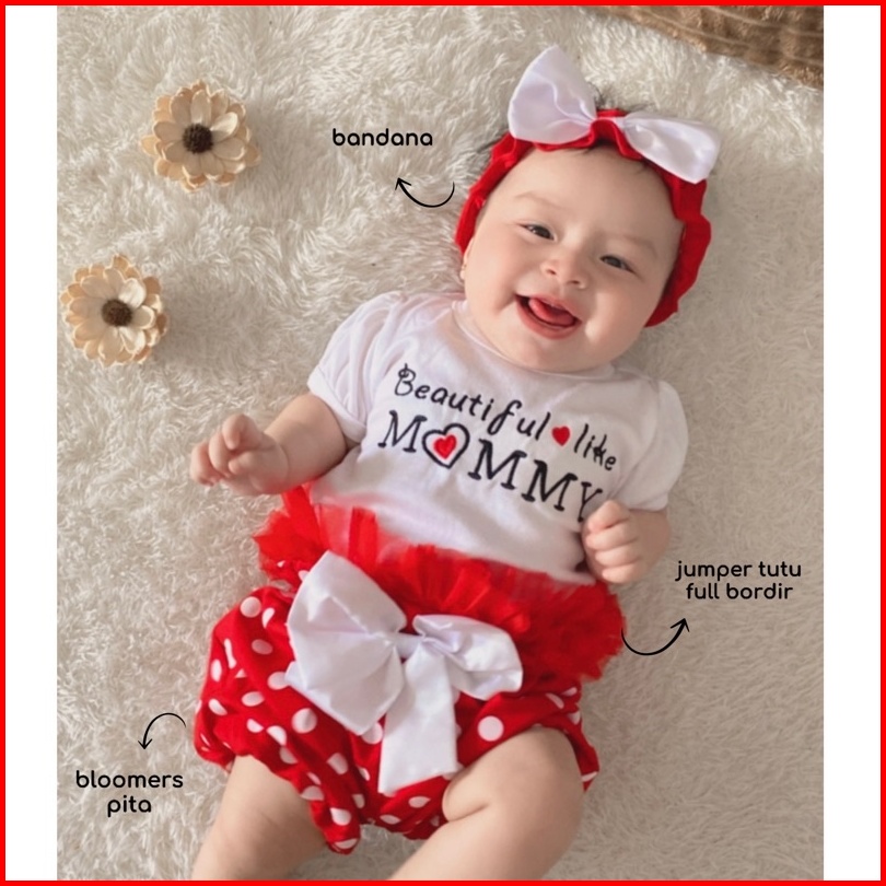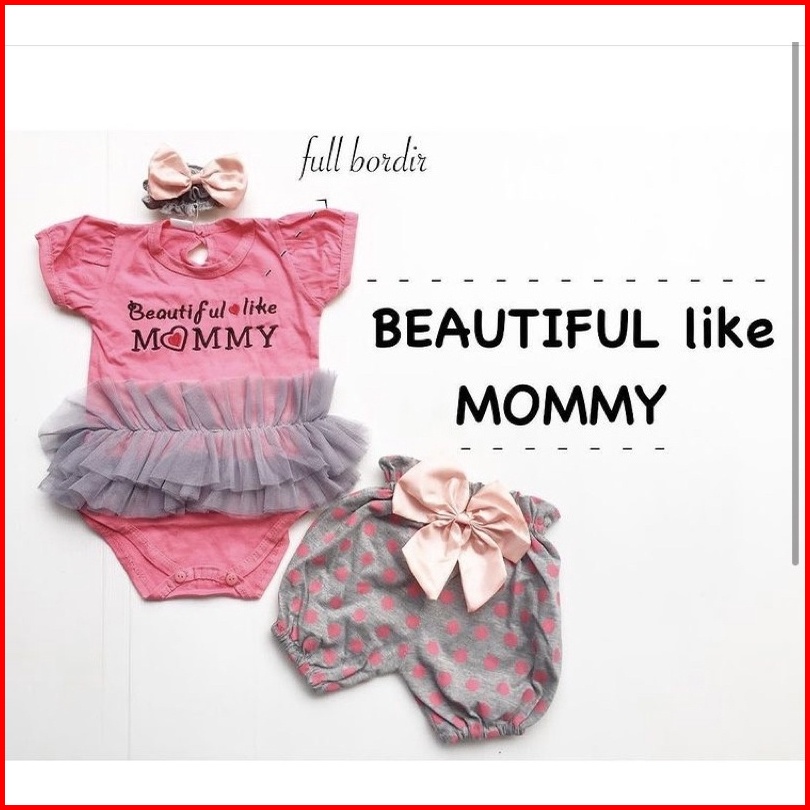 Beautiful Like Mommy Baju Jumper Bandana Pergi Lucu Fashion Anak Bayi Perempuan Cewek Terlaris Murah
