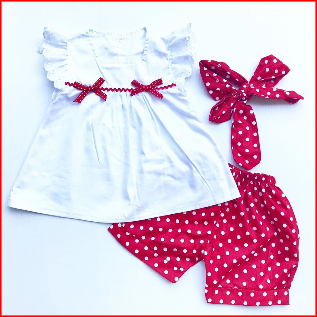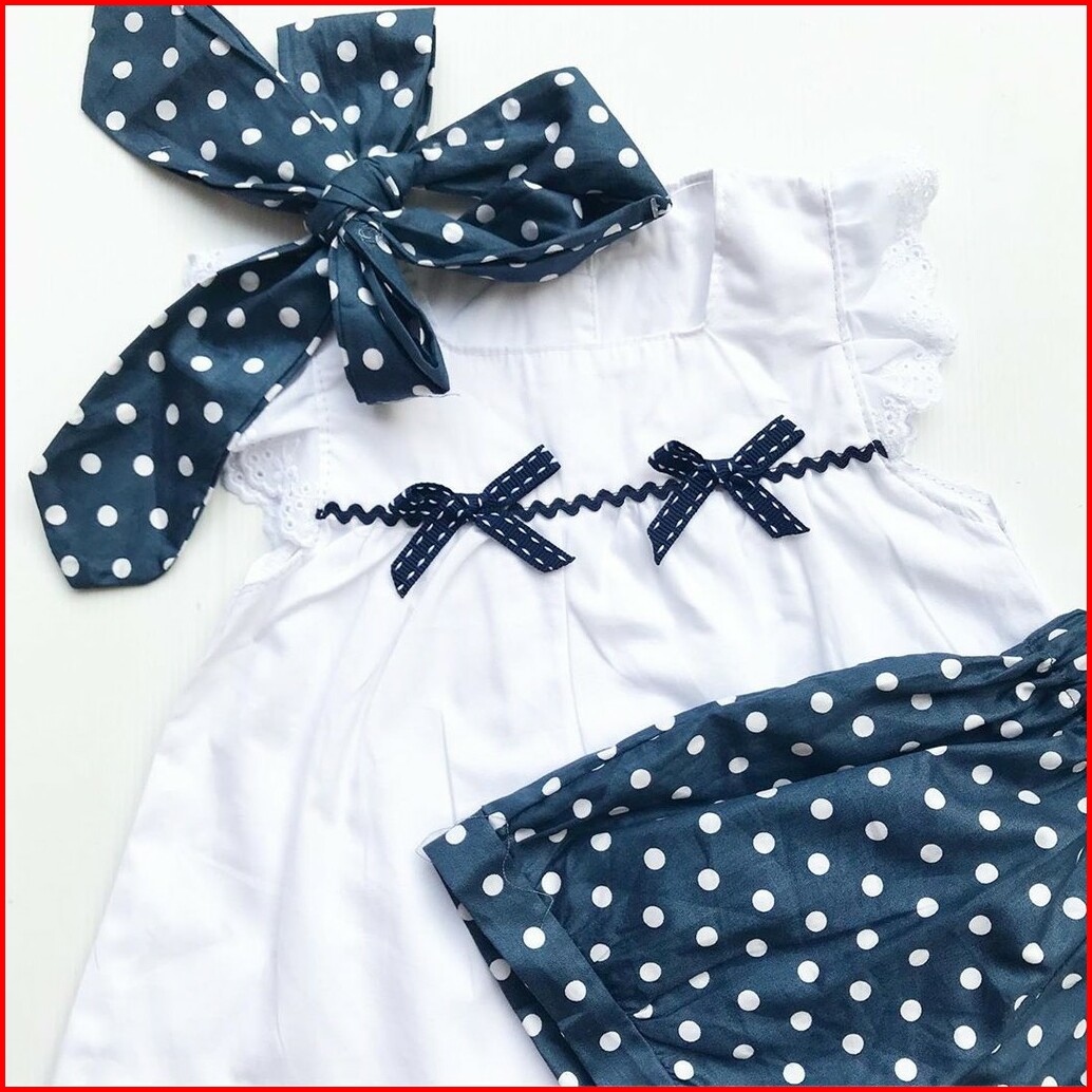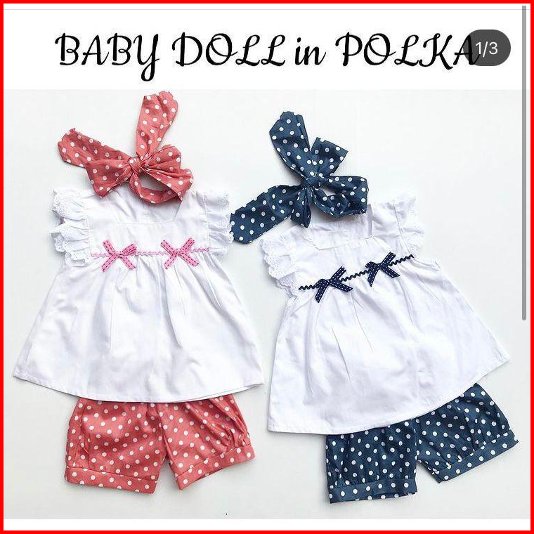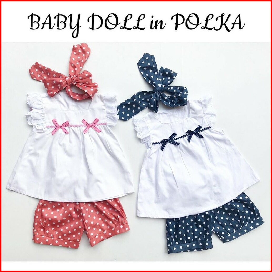 Baby Doll In Polka Baju Setelan Rok Bunga Bandana Pergi Lucu Fashion Anak Bayi Cewek Perempuan