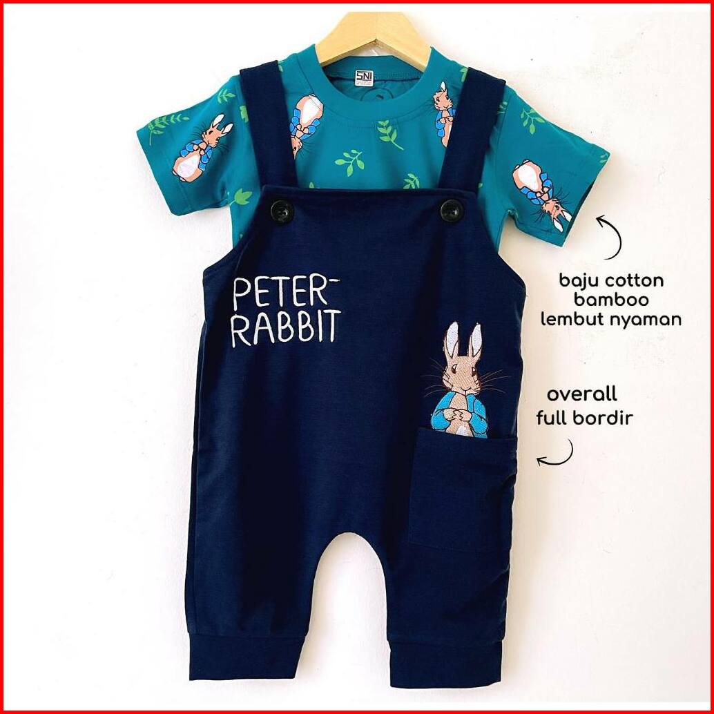 Overall Baju Setelan Kemeja Celana Pergi Jalan Fashion Anak Bayi Cowok Laki Murah Timber Peter Rabbit Doby Zoo