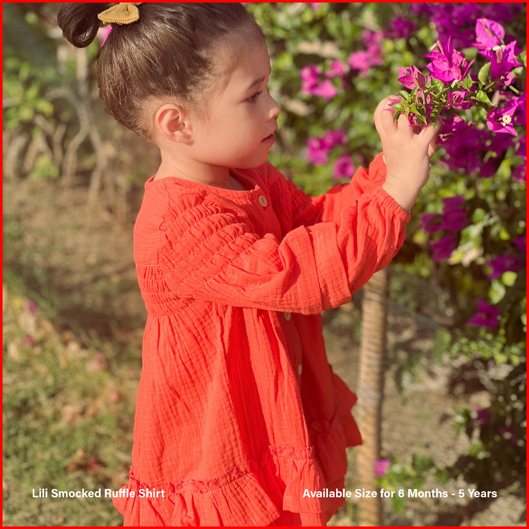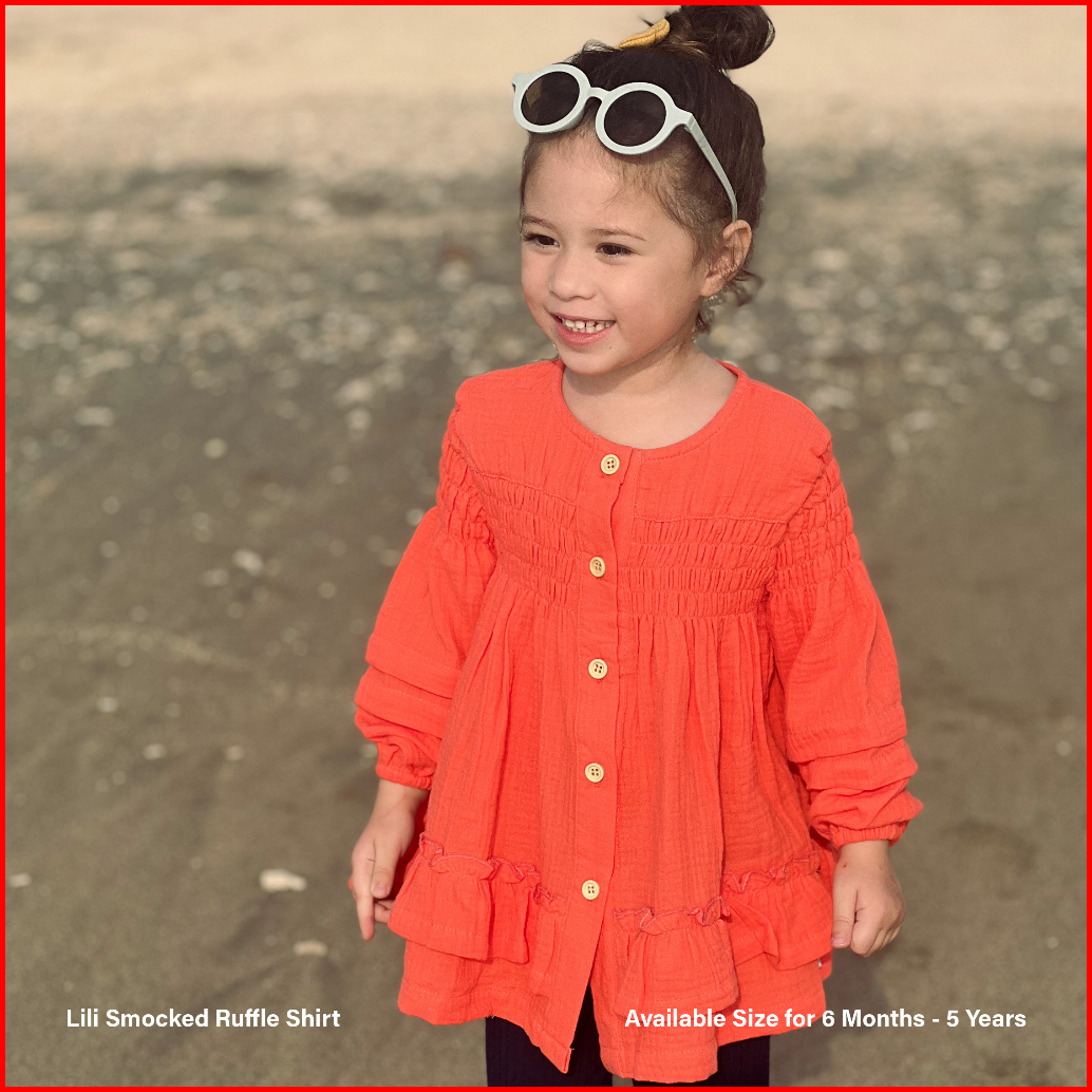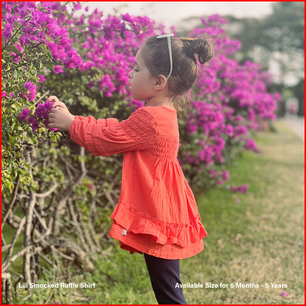 6 Bulan - 5 Tahun Kemeja Lengan Panjang Ruffle Lili Set Baju Setelan Pergi Lucu Fashion Anak Bayi Perempuan Cewek Terlar