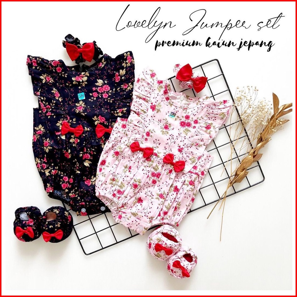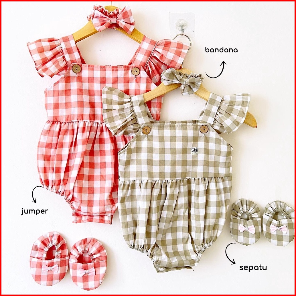Kyria Gianna Cheerful Baju Jumper Rok Bunga Bandana Sepatu Pergi Lucu Fashion Anak Bayi Perempuan Cewek