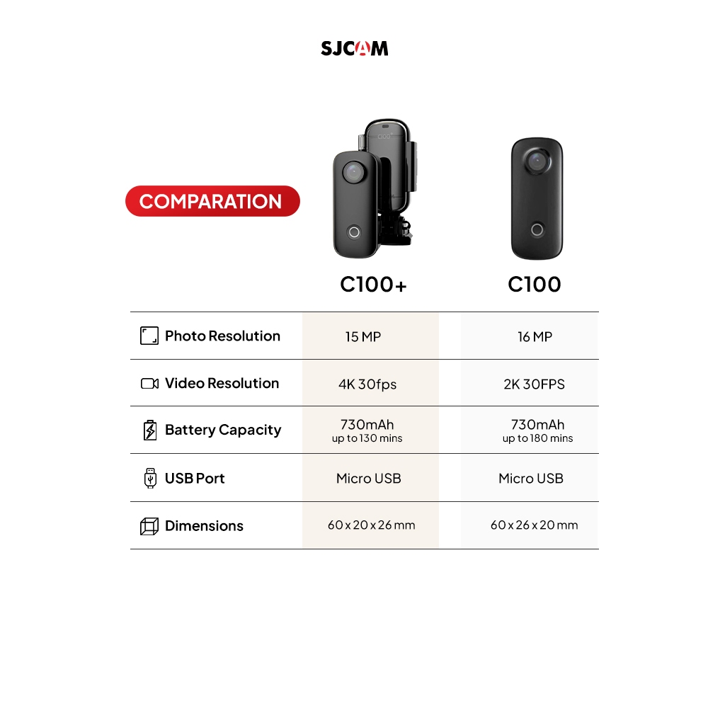 [Mall] SJCAM C100+ Action Camera Mini 4K | Loop Recording | Webcam | Car Mode | Garansi Resmi