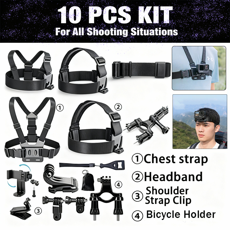 [Mall] Aksesoris Action Camera 10 in 1 Kit Chest Strap Head Strap Mount GoPro – JLK