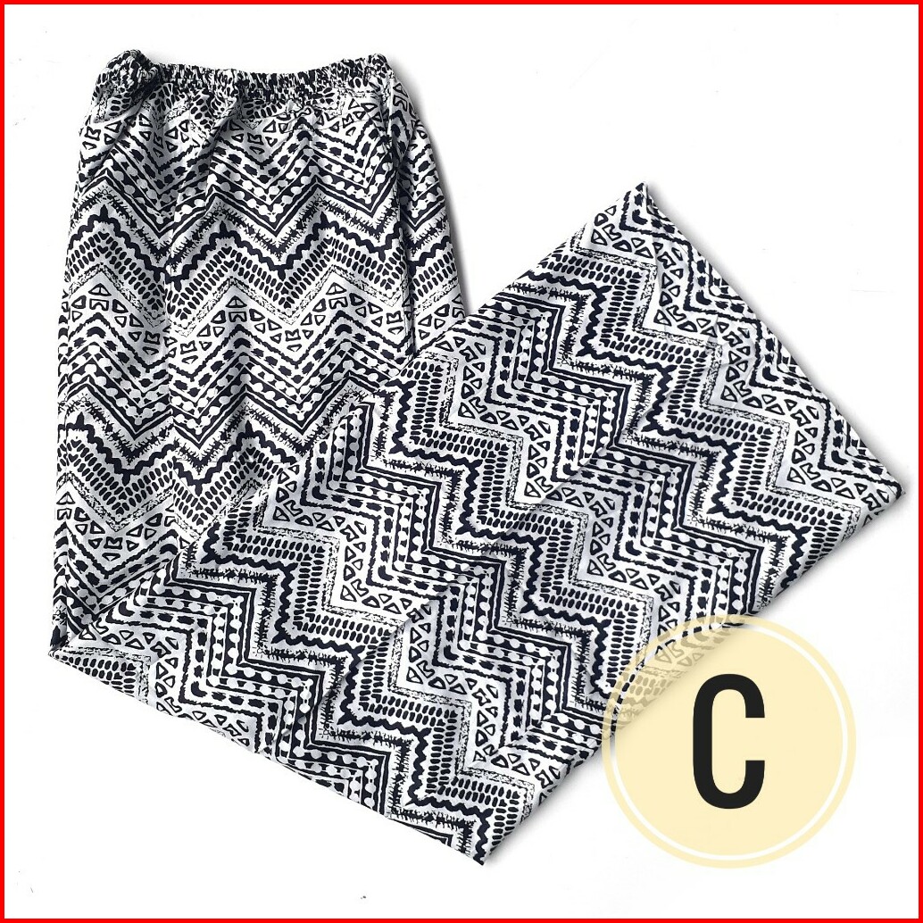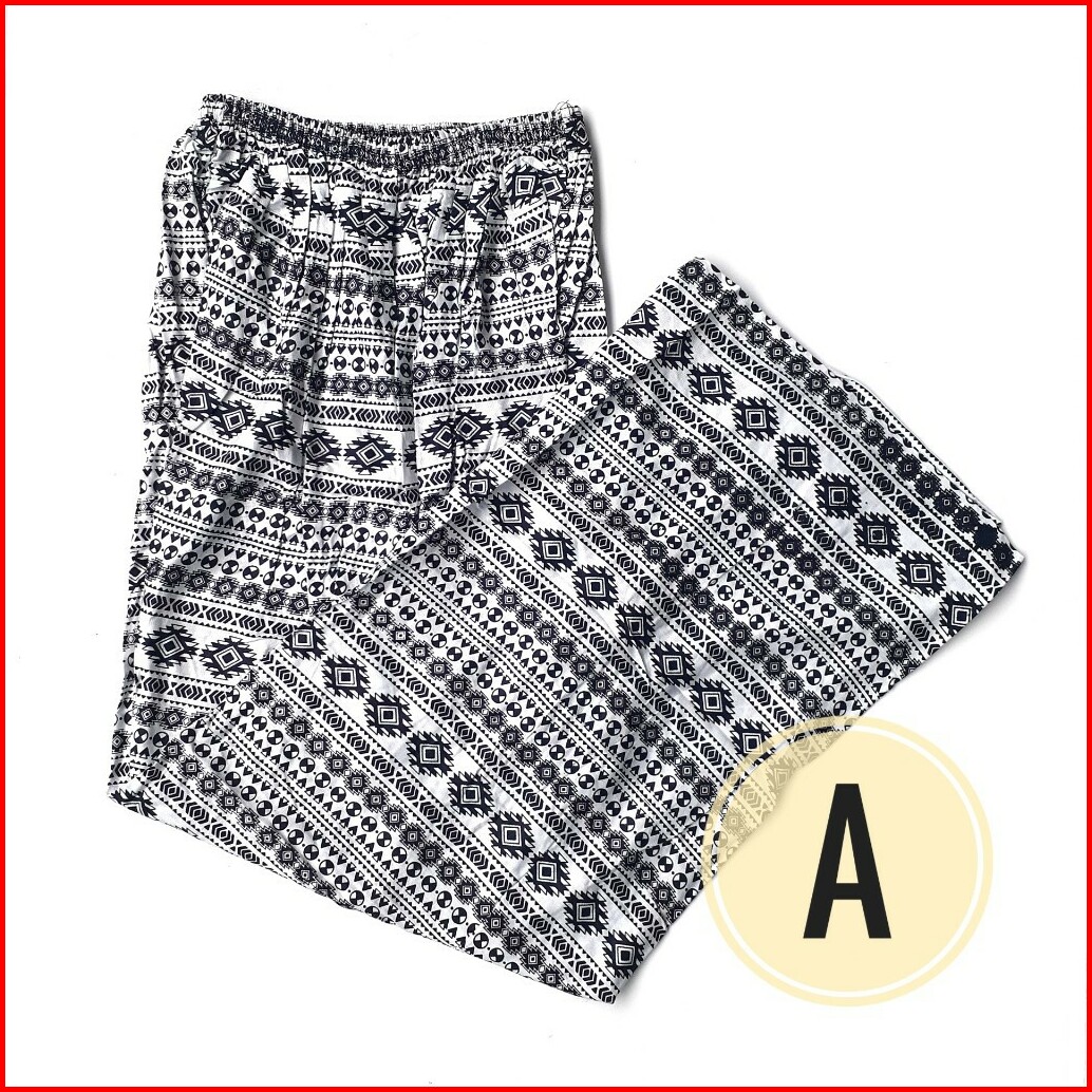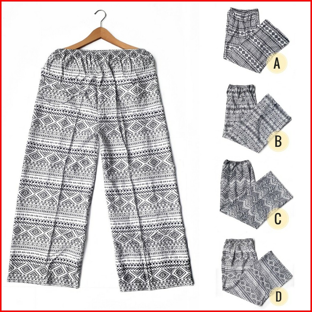 Celana Tidur Kulot Batik Panjang Motif Etnik Putih Bahan Rayon