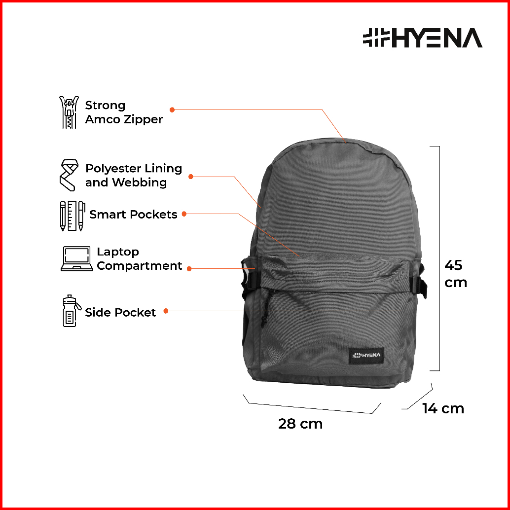 Hyena Lp72 - Backpack Collyn S Series Premium Tas Kuliah Polos Pria Wanita Ransel Sekolah Smp Sma