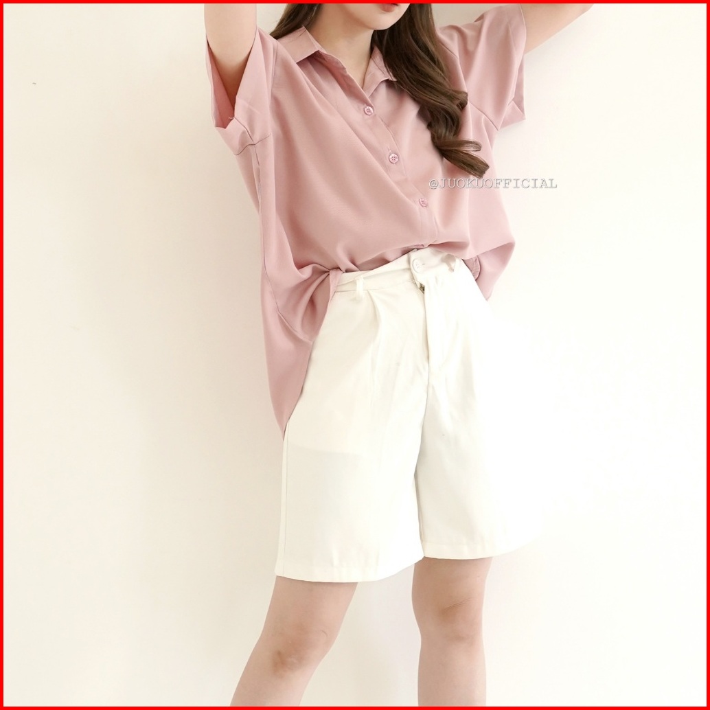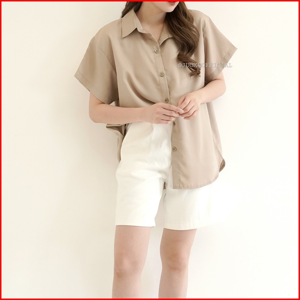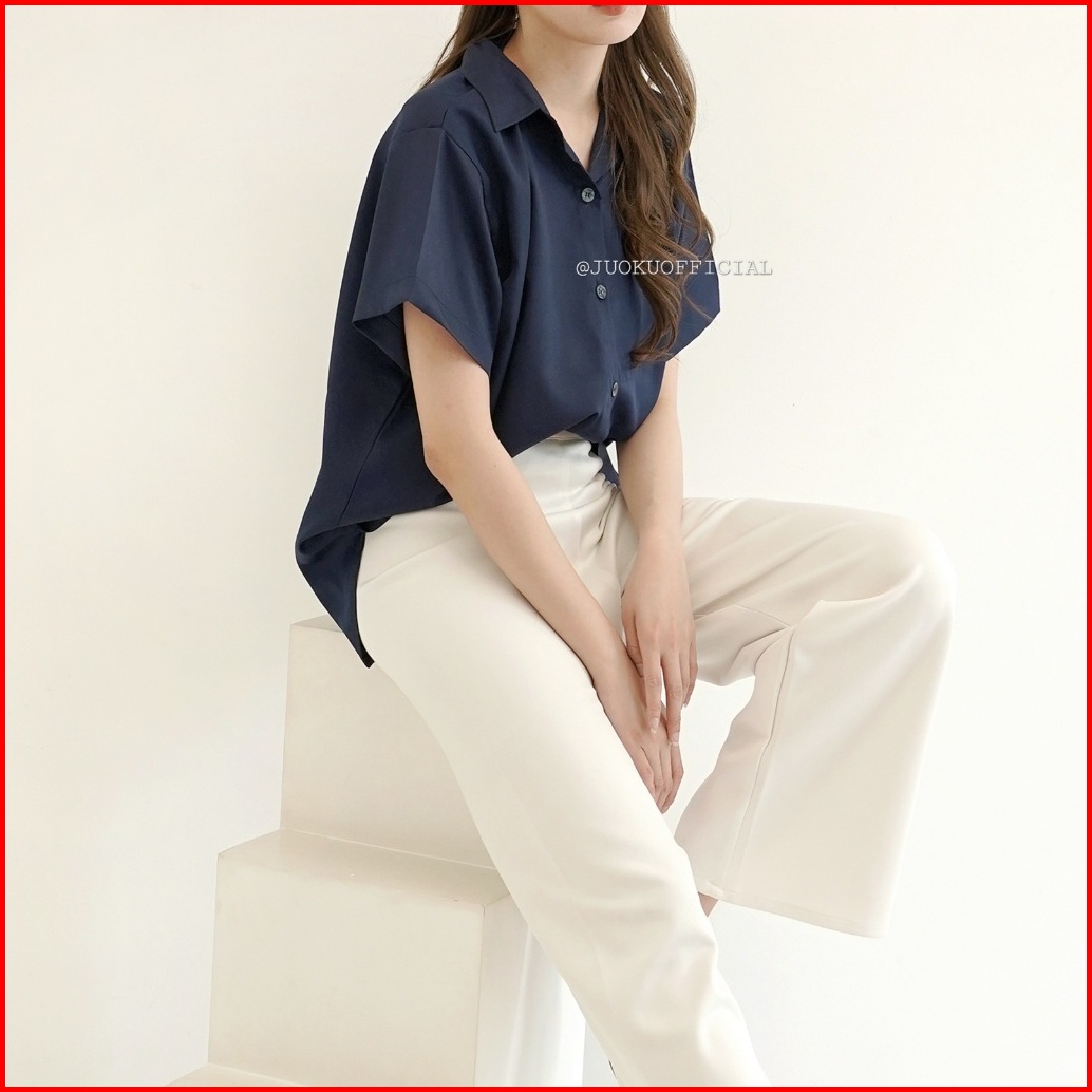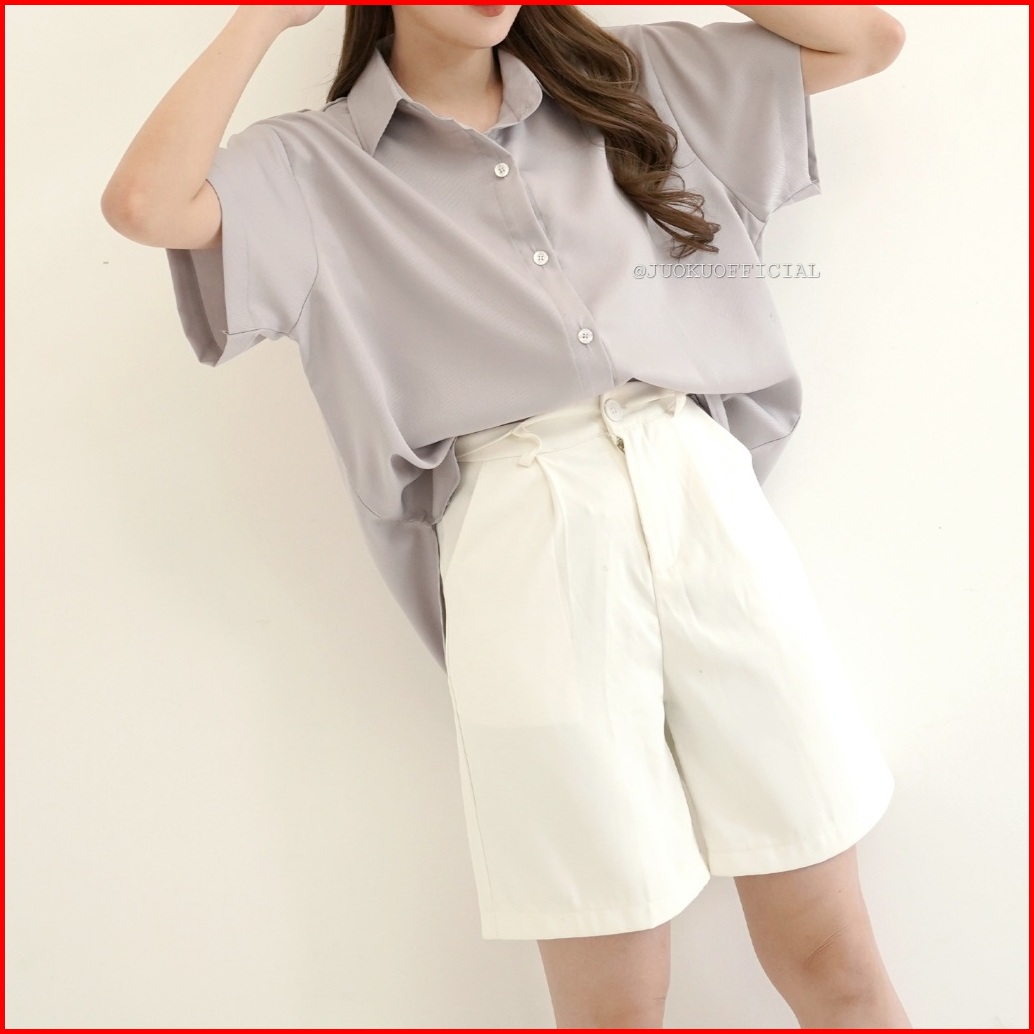 Yuki Shirt Top - Kemeja Basic Oversize Lengan Pendek Kemeja Flowy Anti Kusut Atasan Formal Kemeja Premium Short Sleeve S