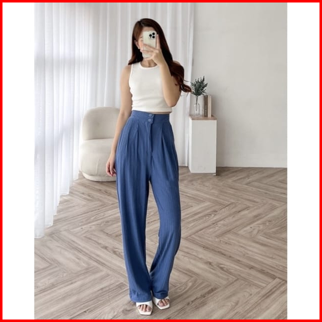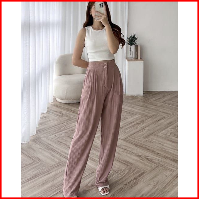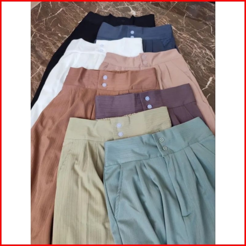 Jennie Knit Pants Celana Kulot Highwaist Knit Kancing 2 Celana Knit Wanita