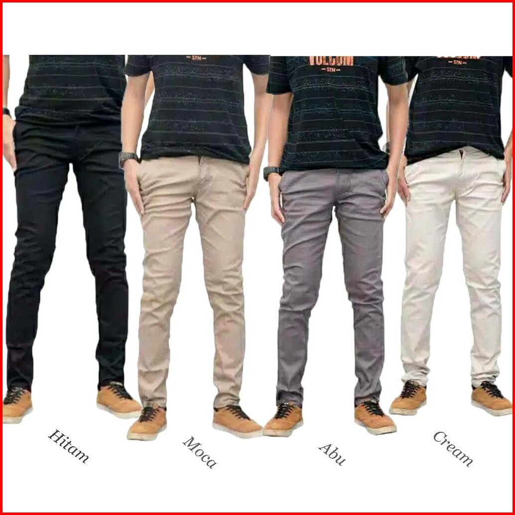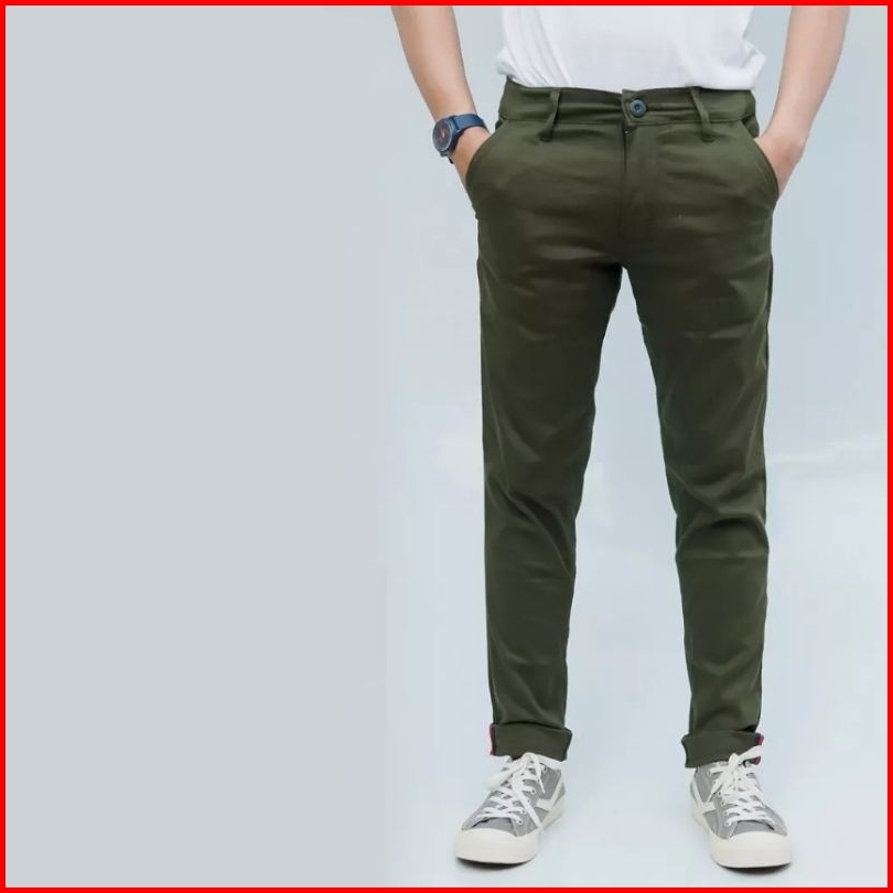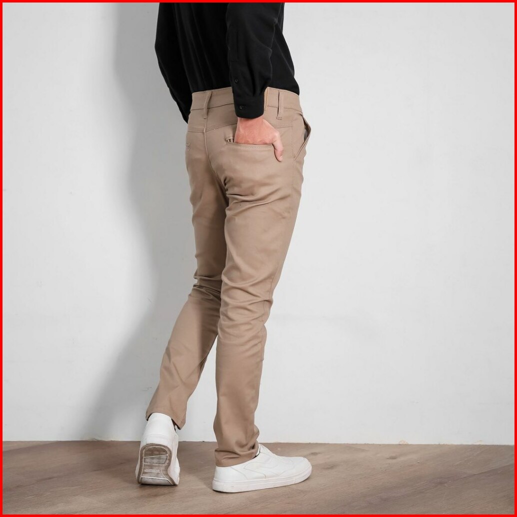 Celana Chinos Cowok Panjang Army Moca Cream Hitam