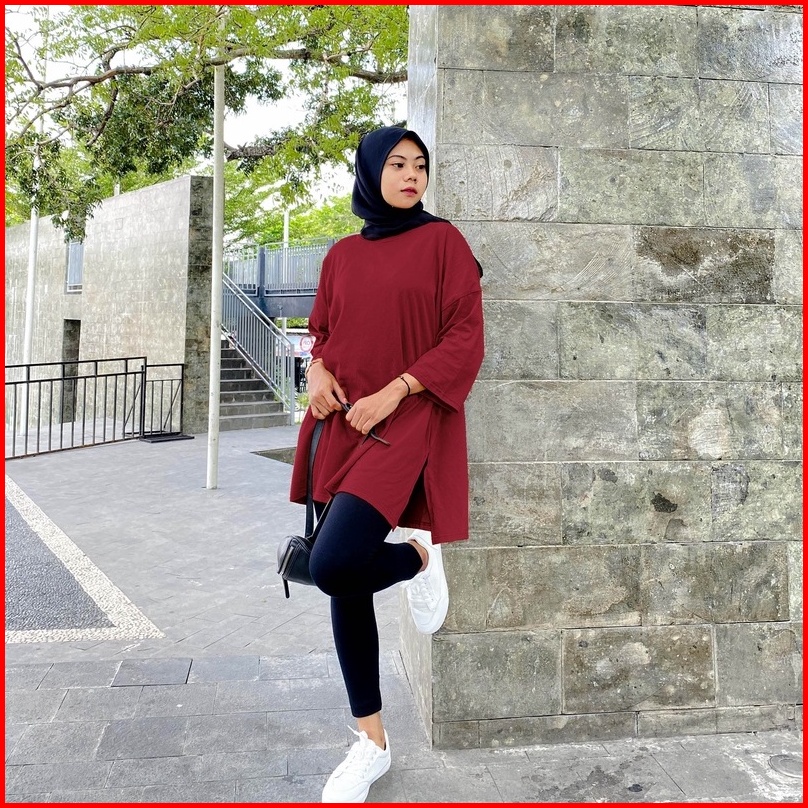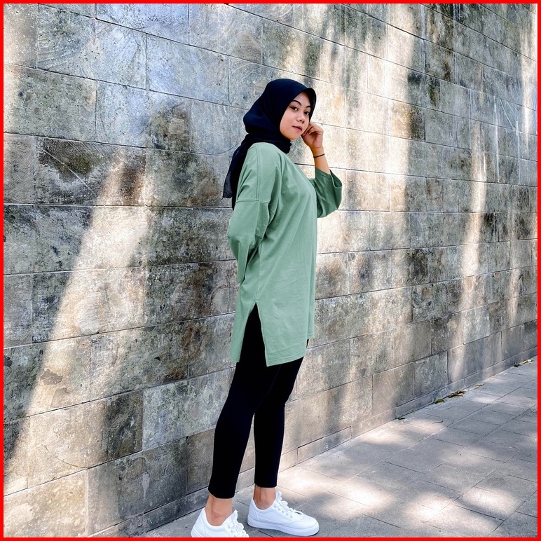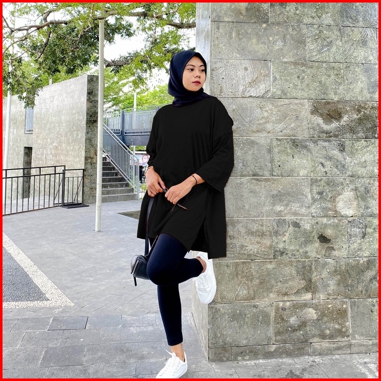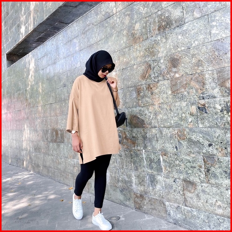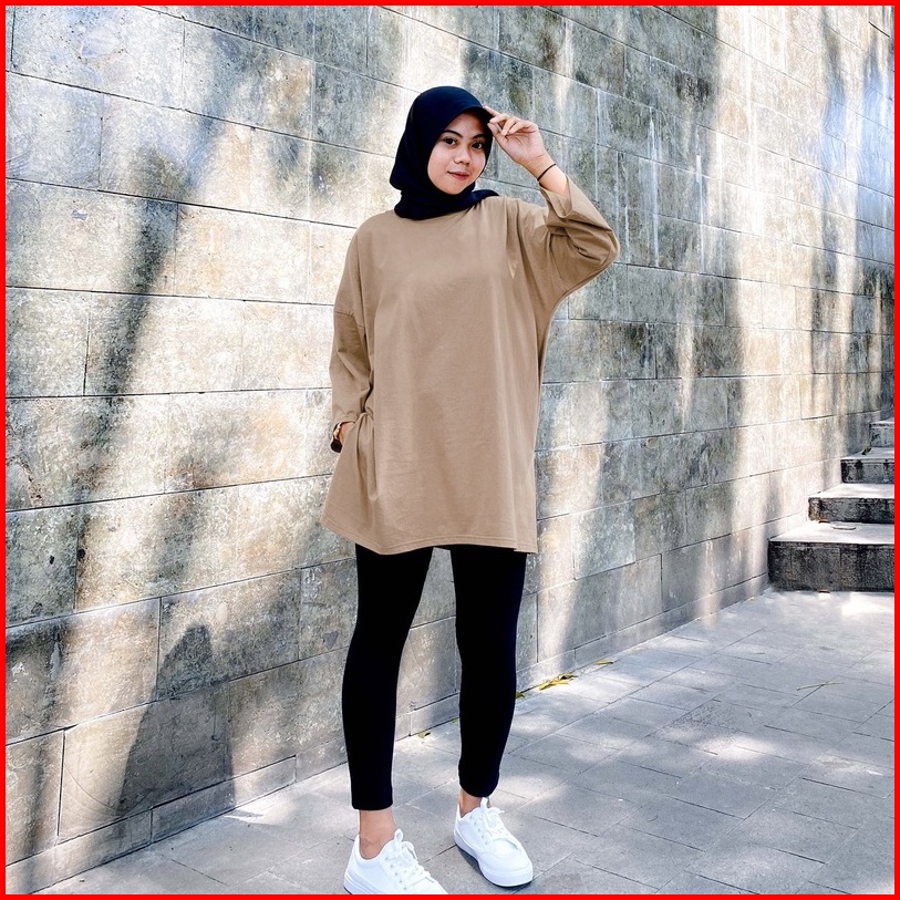 Kaos Oversize Hijab Friendly Lengan 7 8 Basic Top Oversize Knara