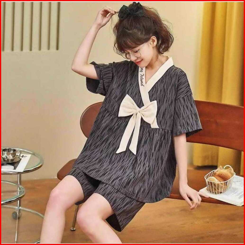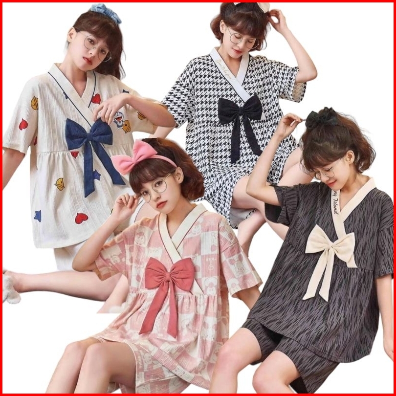 Rulif Baju Tidur Wanita Vneck Pendek Set Piyama Wanita Import List Hotpant Winnie