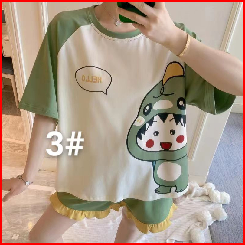 Rulif Setelan Piyama Baju Tidur Hotpant Wanita Kaos Import Bahan Katun Set Stella Hp