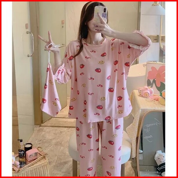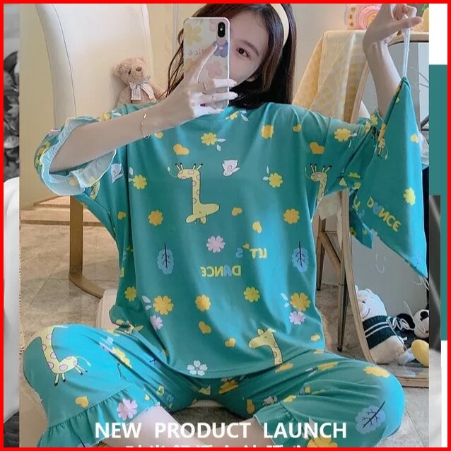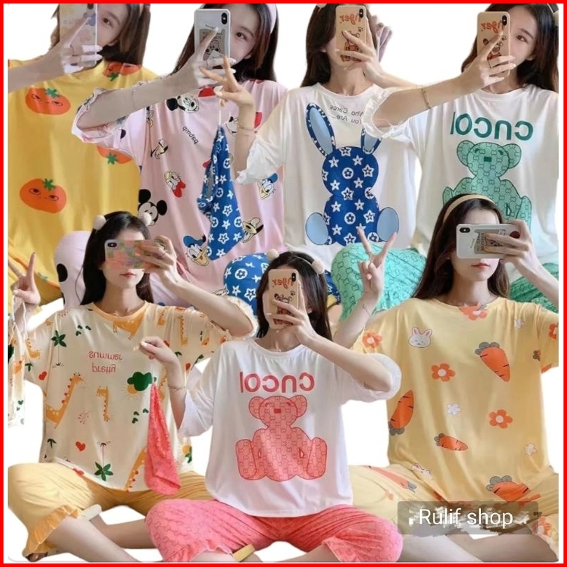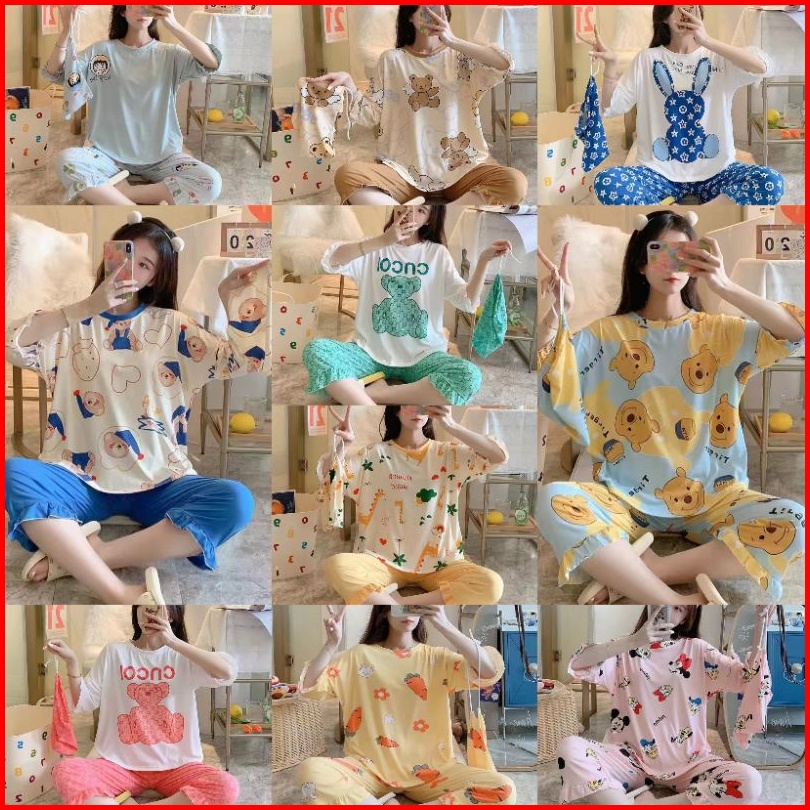 Baju Tidur Wanita Lengan Pendek Piyama 7 8 Wanita Baju Tidur Import Renda Jumbo Free Pouch Serut