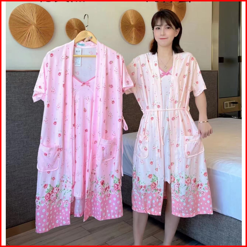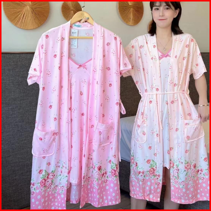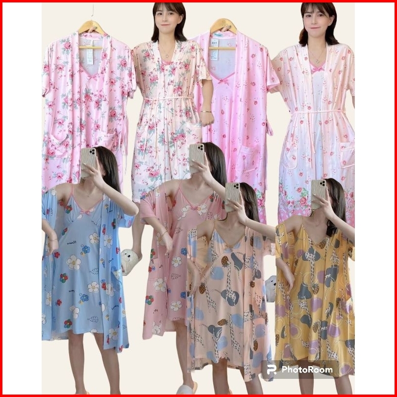 Rulif Kimono Wanita Tali 2in1trikot Bahan Soft Import Daster Kimono Spandek Import Kimono Renda Dress Tanktop Tali Bunga