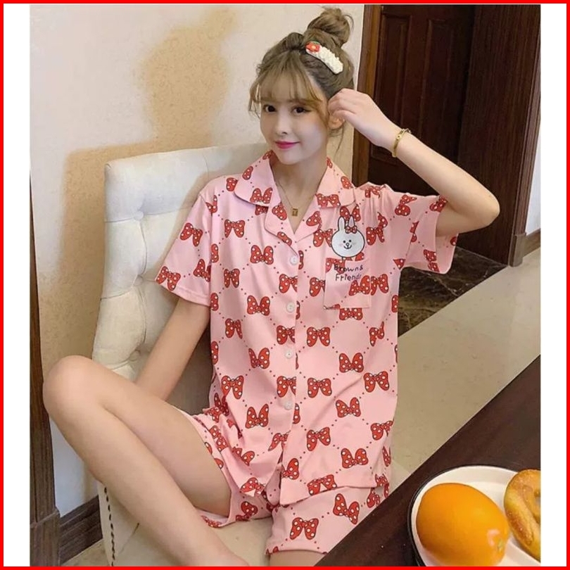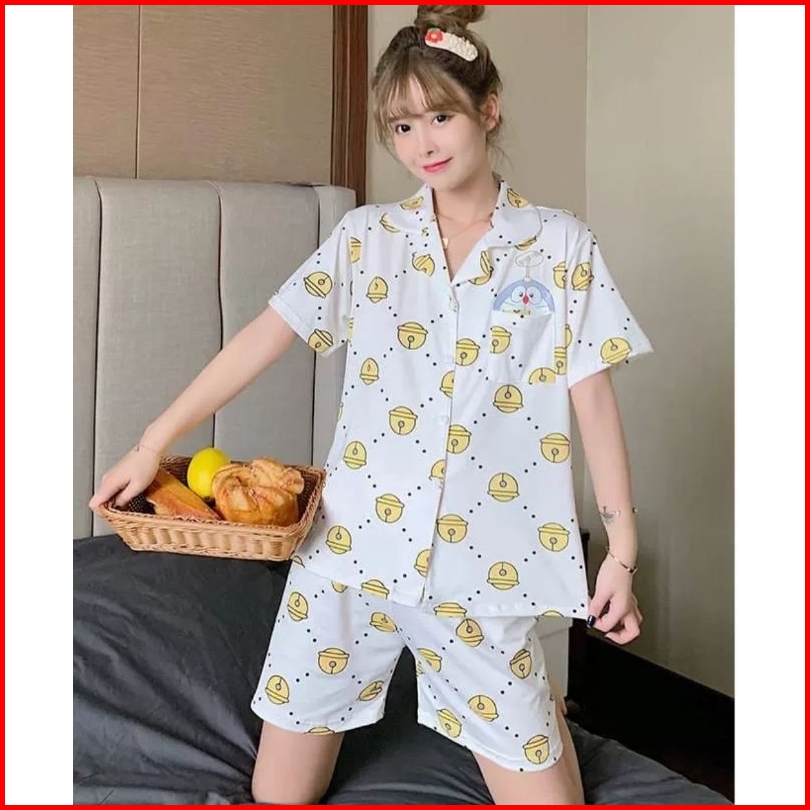 Rulif Piyama Baju Tidur Wanita Krah Kancing Lengan Pendek Celana Pendek Hotpants Kittybell