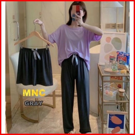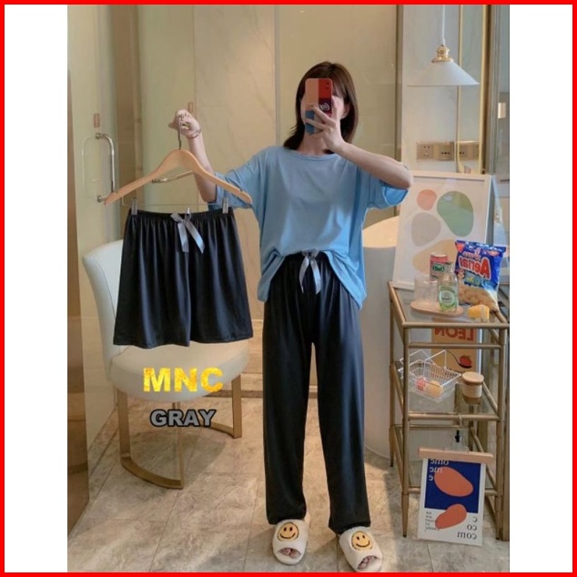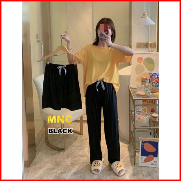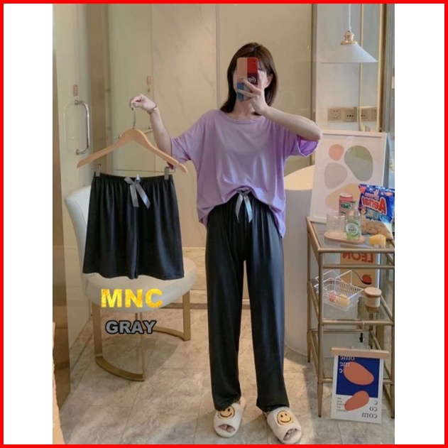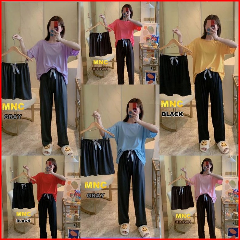 Rulif Piyama Cp 3in1 Wanita Baju Tidur Import Lengan Pendek
